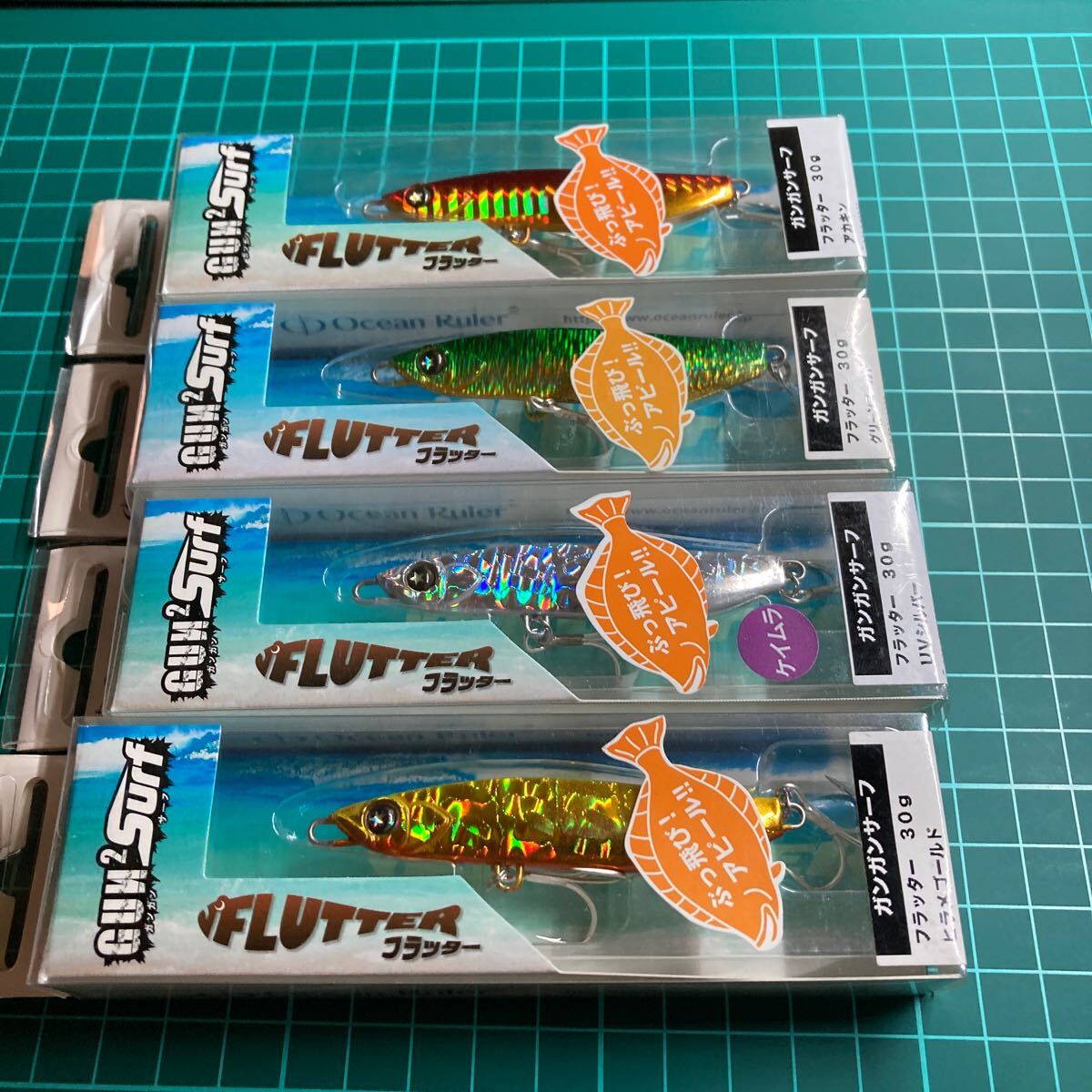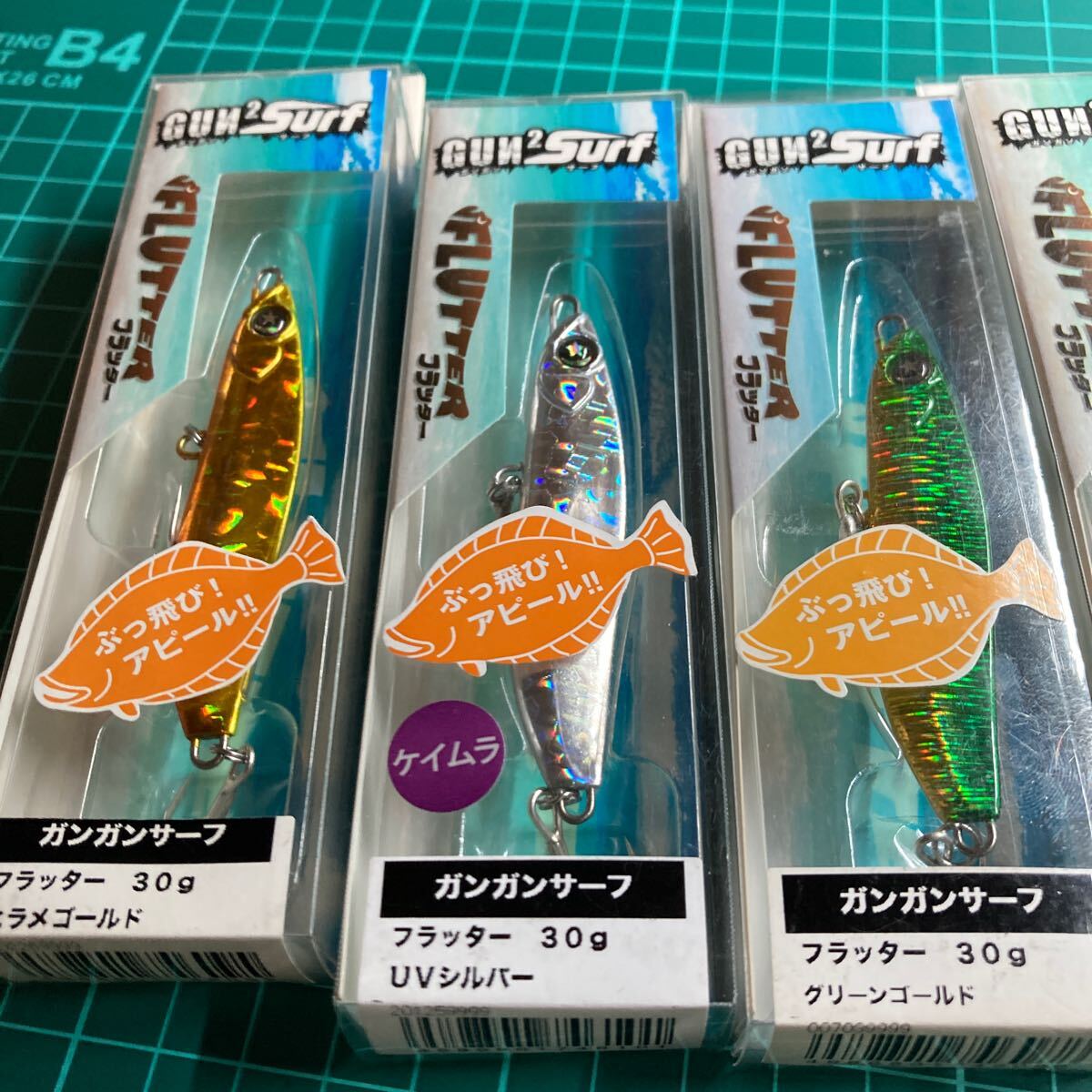 即決 4個セット 30g ヒラメゴールド、UVシルバー、グリーンゴールド、アカキン フラッター ガンガンサーフ