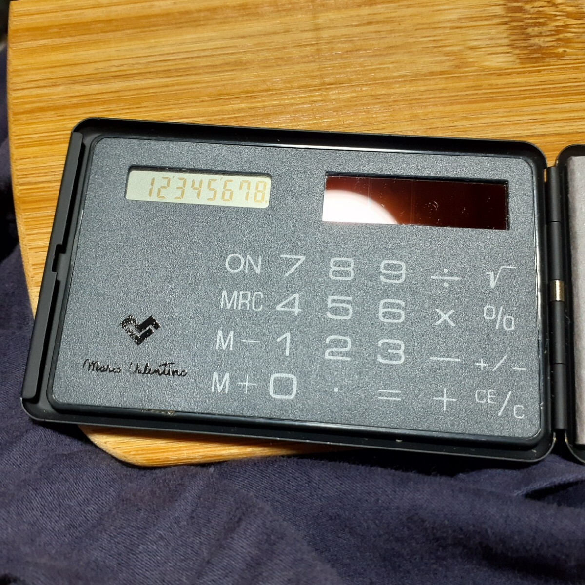 Googleで調べた所、「Mario Valentino」の液晶カード型ソーラー電卓らしいです。