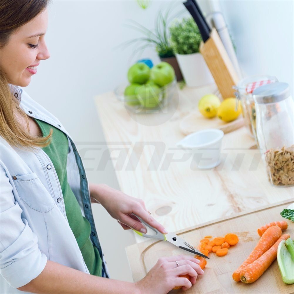• 【多機能】優れたキッチンシアは、より厚い食品、滑りやすい食品、肉、魚鱗のスクレーパー、家禽の骨、チーズのおろし金、野菜、厚紙、パッケージ、果物、ハーブに効果があります。あなたは料理に関連するものはほとんど何でも切ることができます。