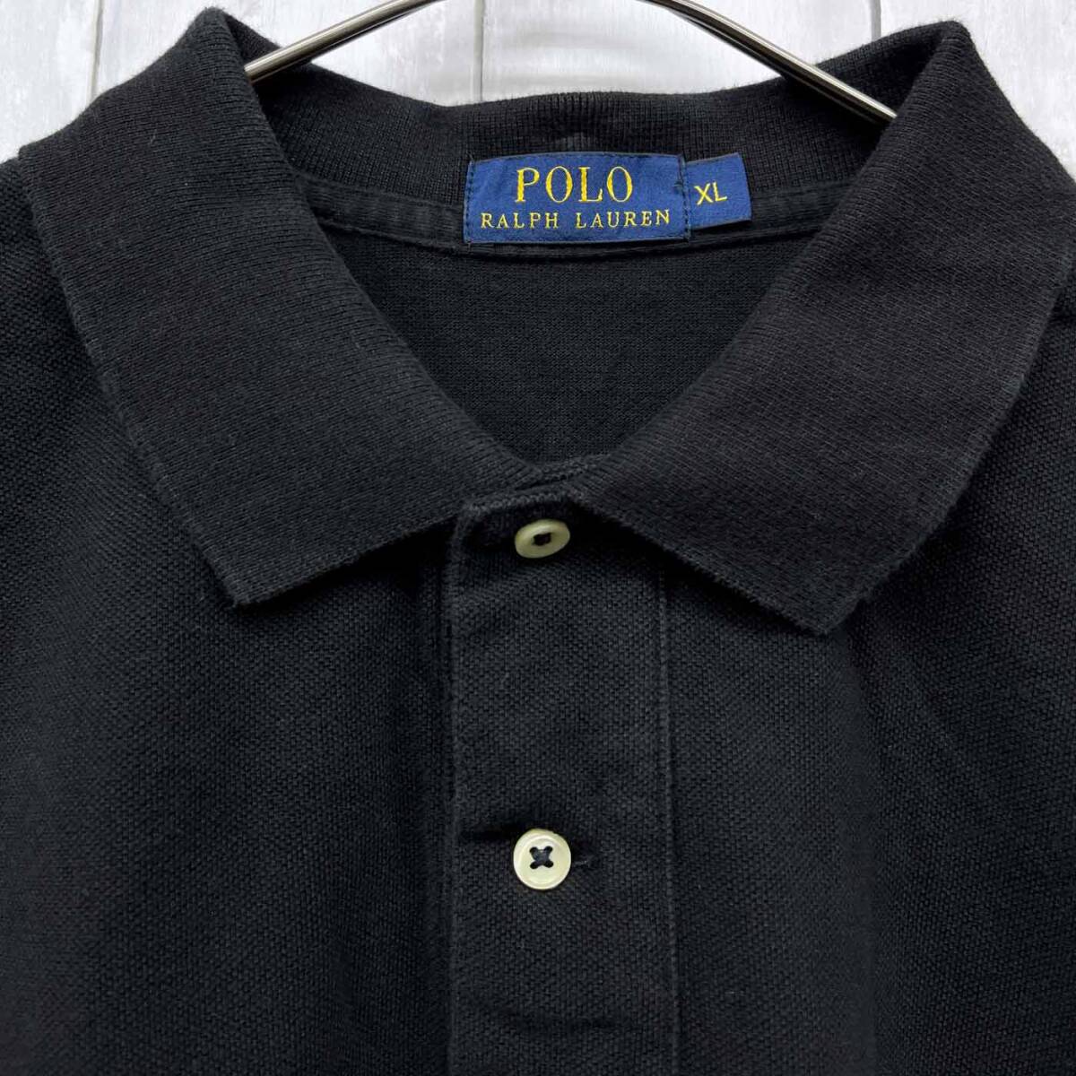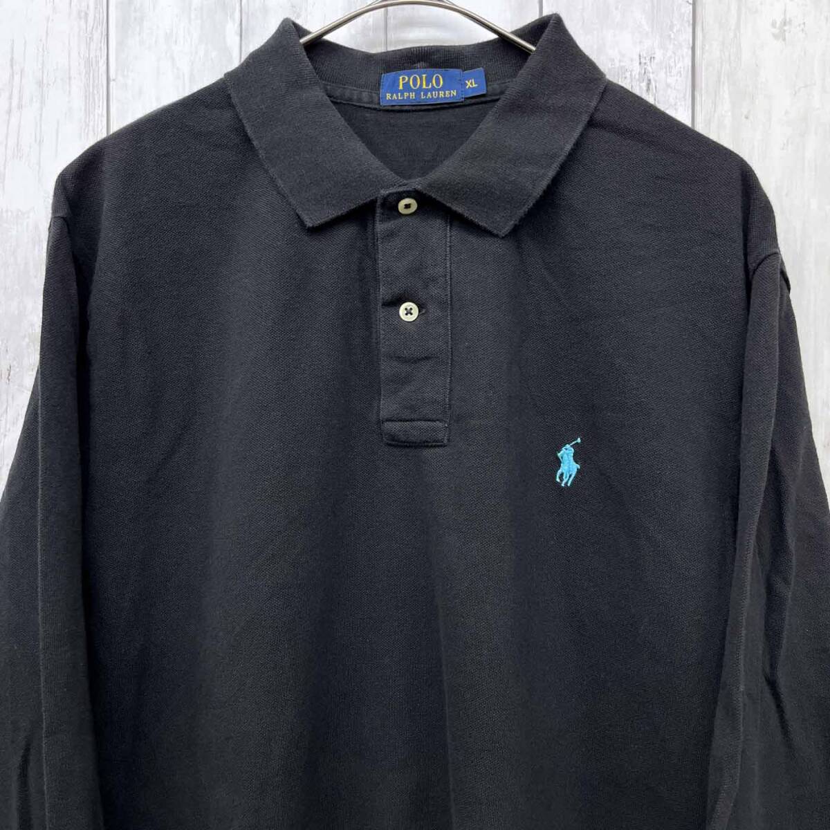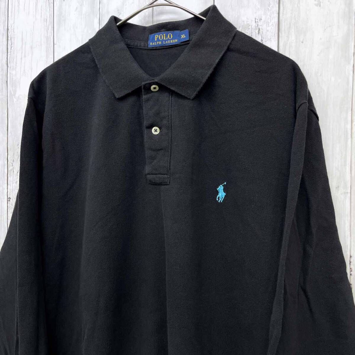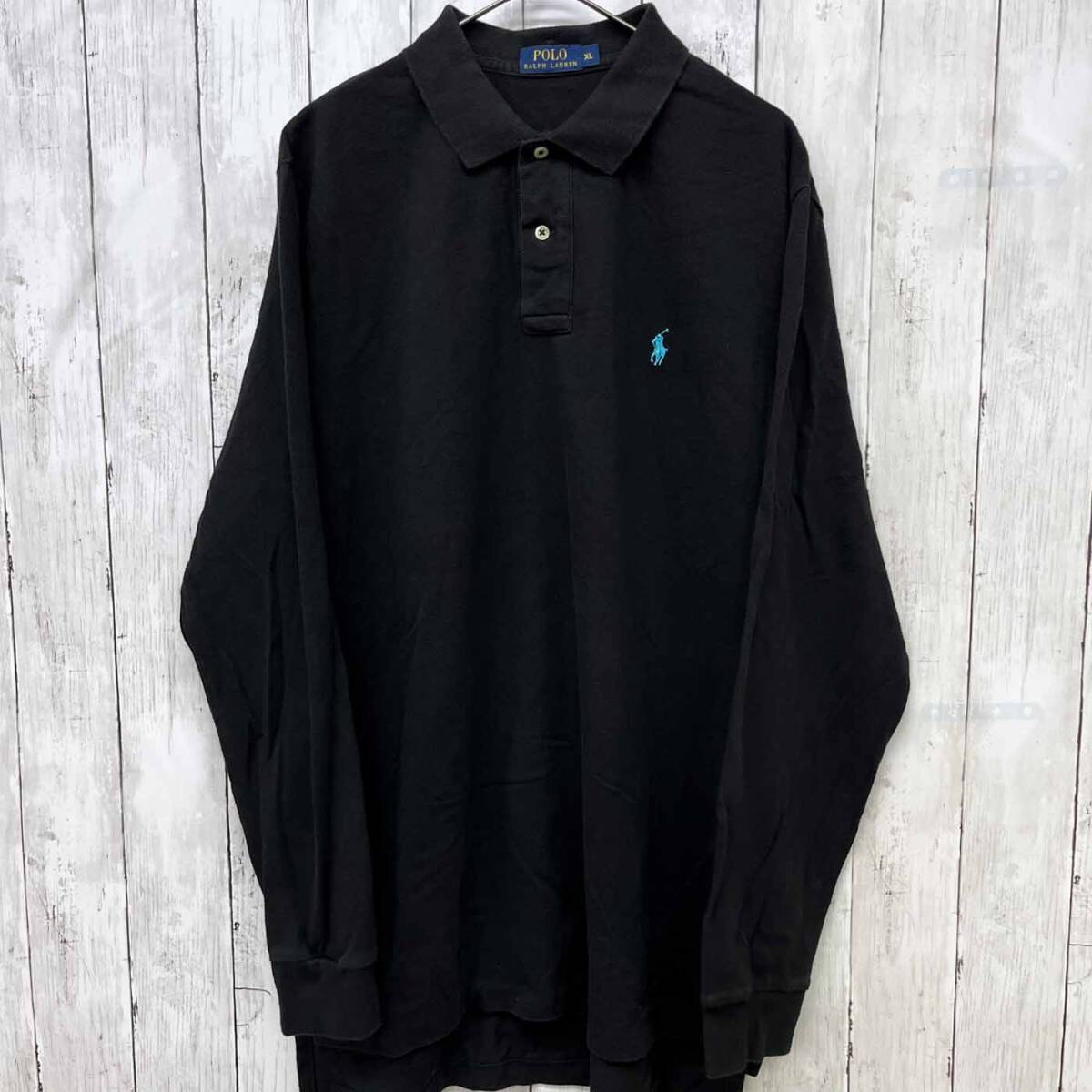 ラルフローレン Ralph Lauren 長袖ポロシャツ メンズ ワンポイント 黒 ブラック コットン100% XLサイズ 6-470