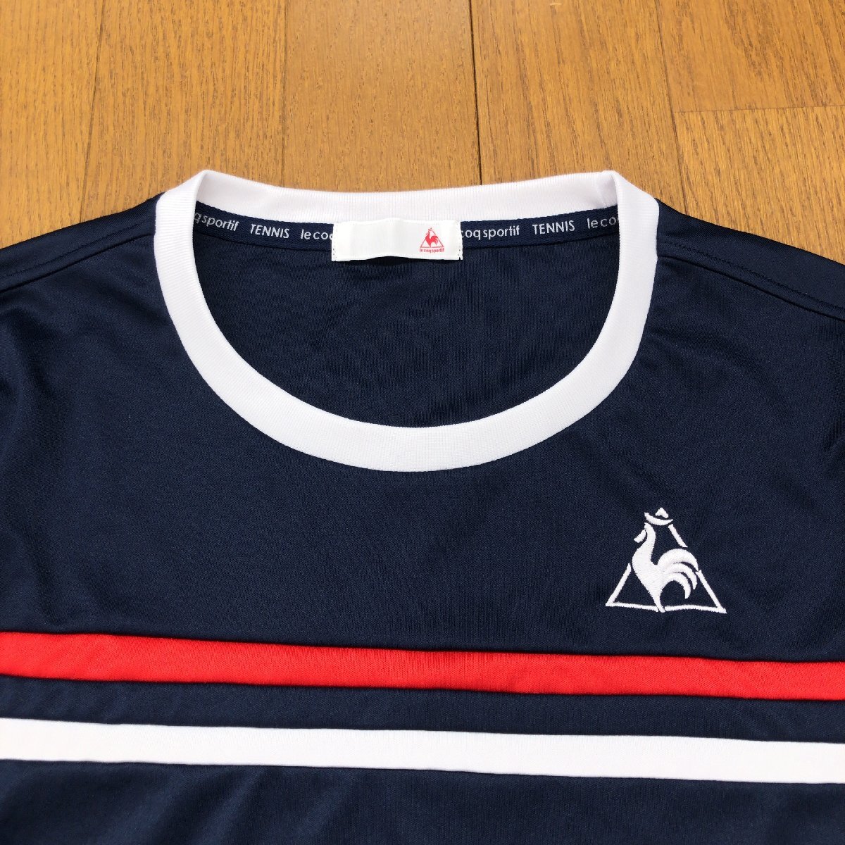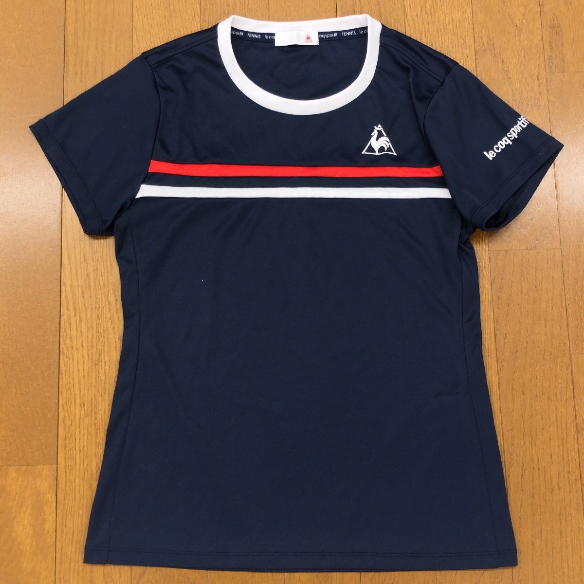 極美品 le coq sportif ルコック 定価4,950円 吸水速乾 ドライ テニス プラクティスシャツ M 濃紺 ネイビー 半袖 バドミントン レディース