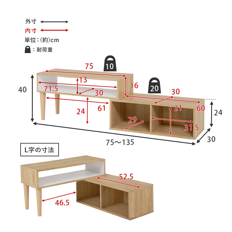 サイズ:(約)幅75~135×奥行30×高さ40cm