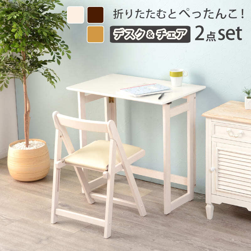 折りたたみ式なので収納や持ち運びに便利なデスク&チェアセット。