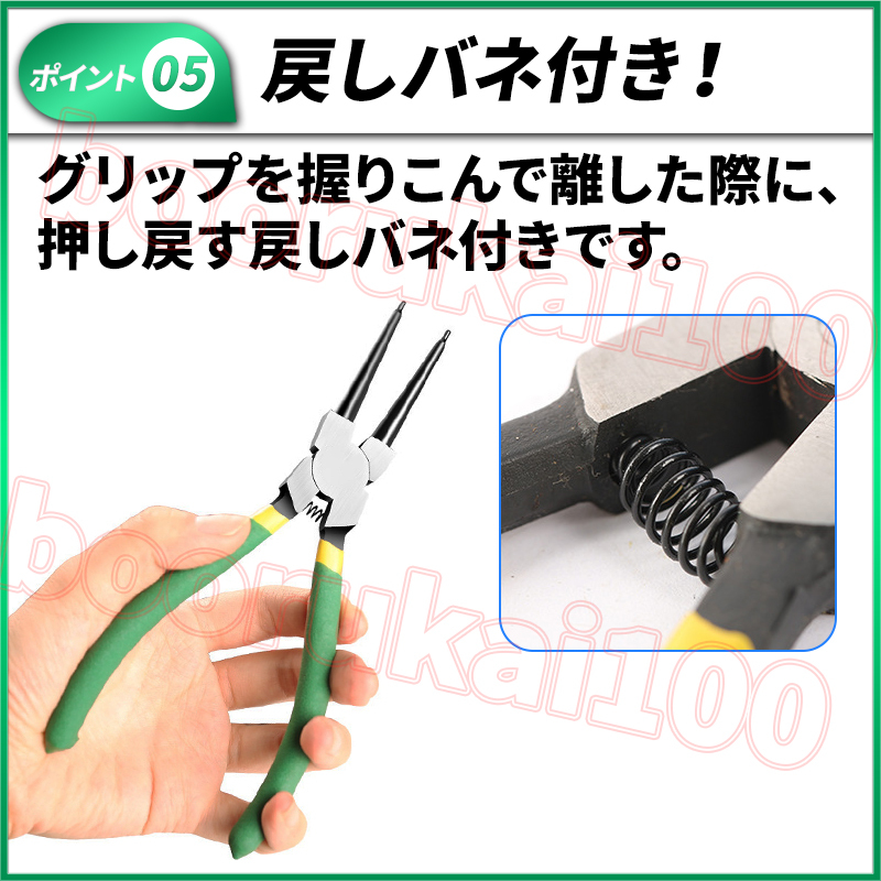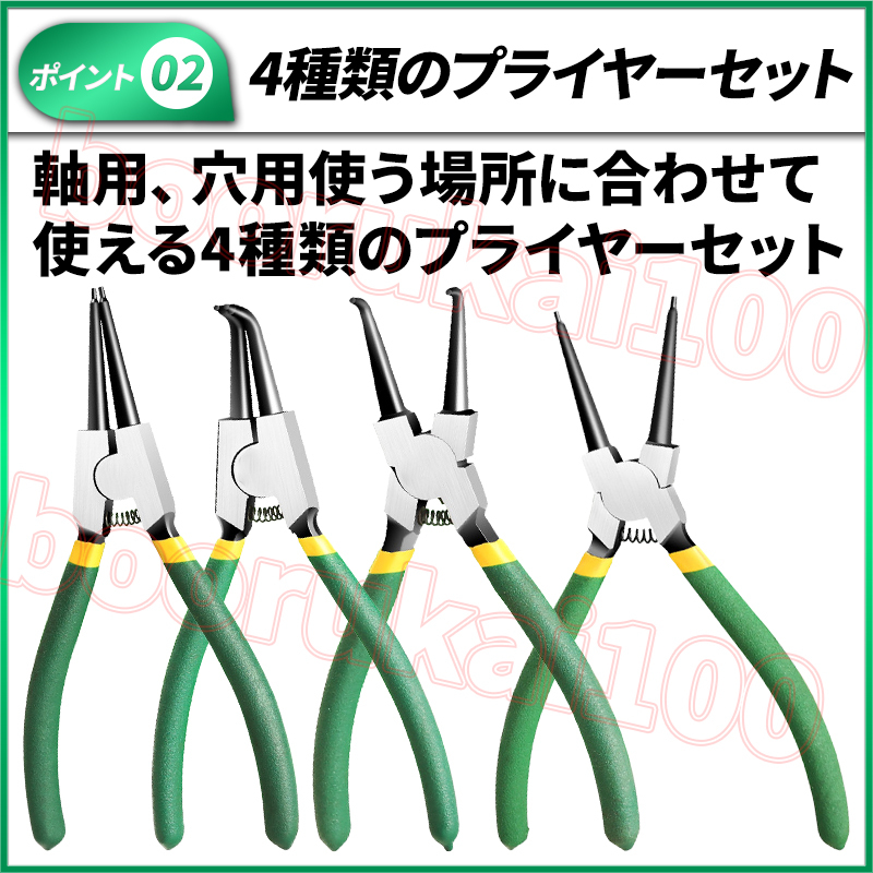 7インチサイズ スナップリングプライヤー 4個セット 軸用 穴用 収納ポーチ付き |