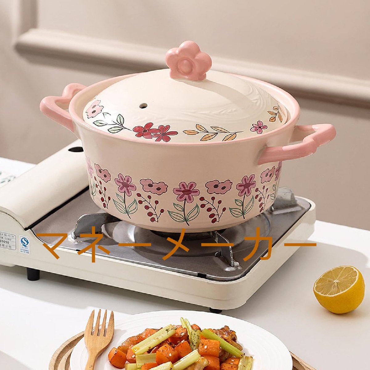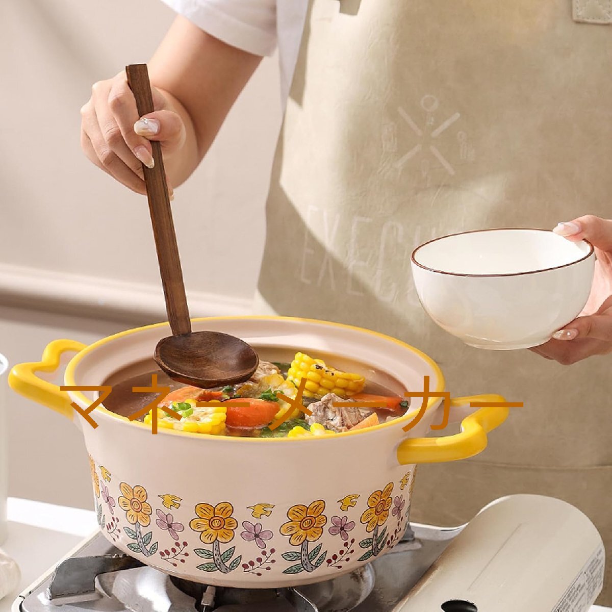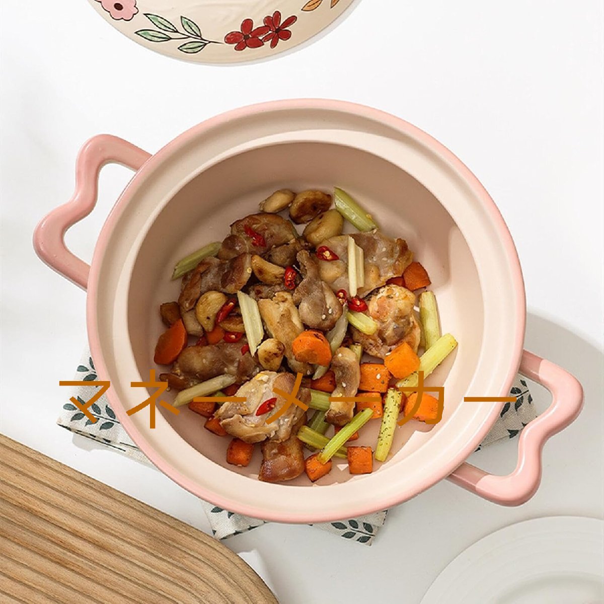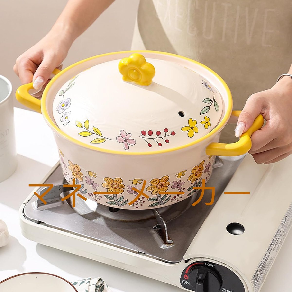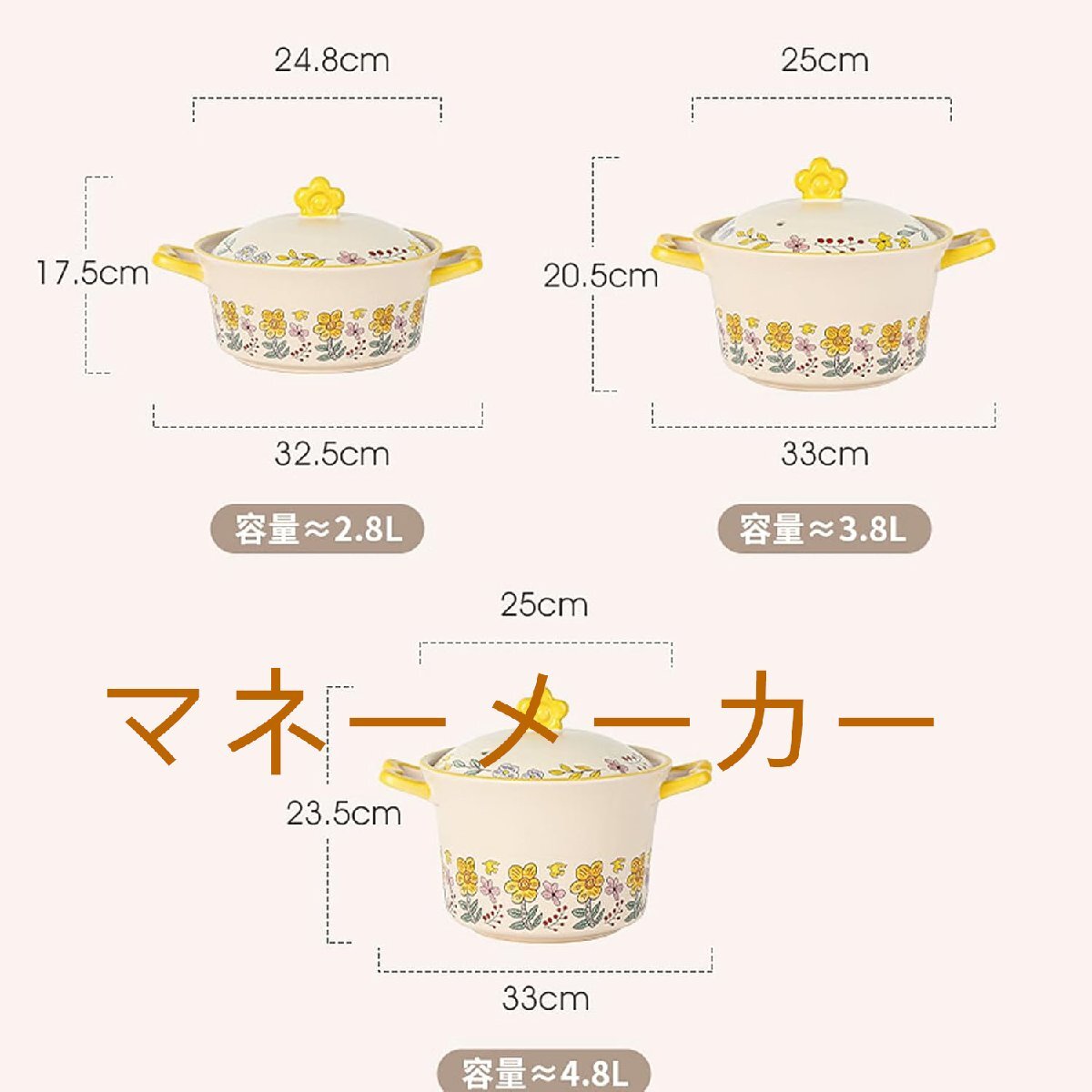 大容量 キャセロール ガス ガスコンロ専用 高温耐性 土鍋ご飯 セラミックキャセロール シチューポット 3.8L