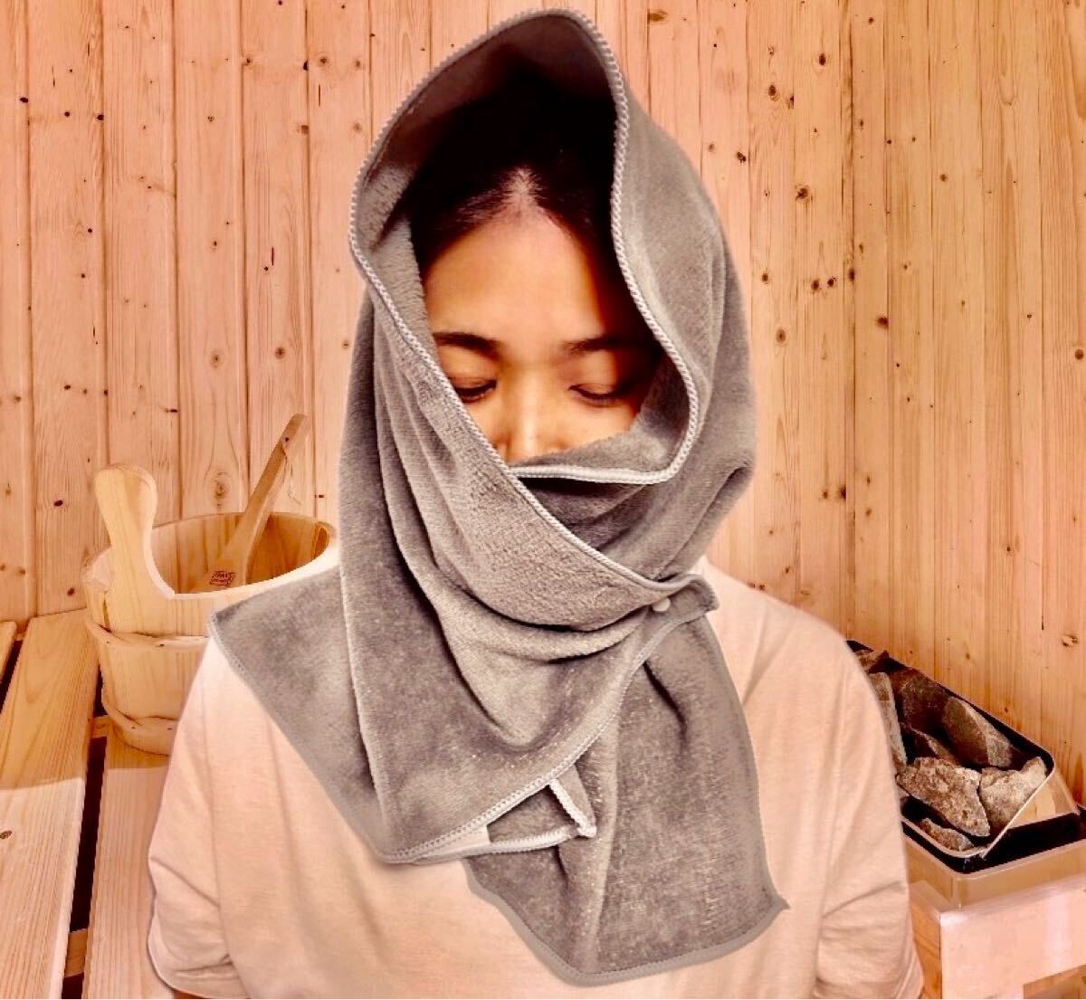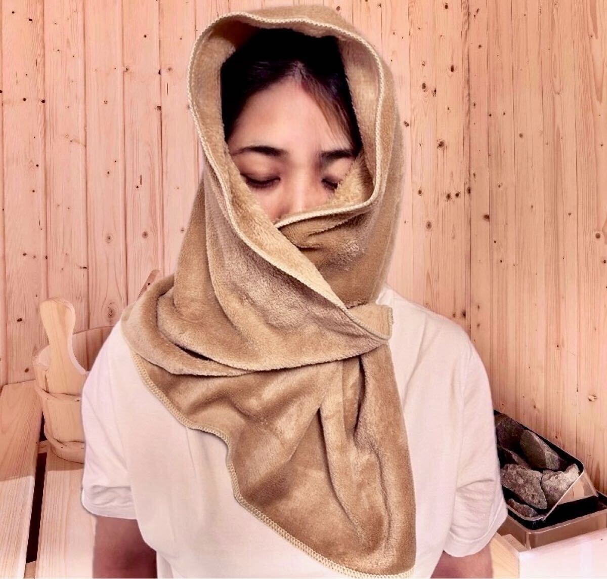 サウナの強烈な熱波により、おこりがちな髪の傷みや顔と喉の乾燥から守ります!!