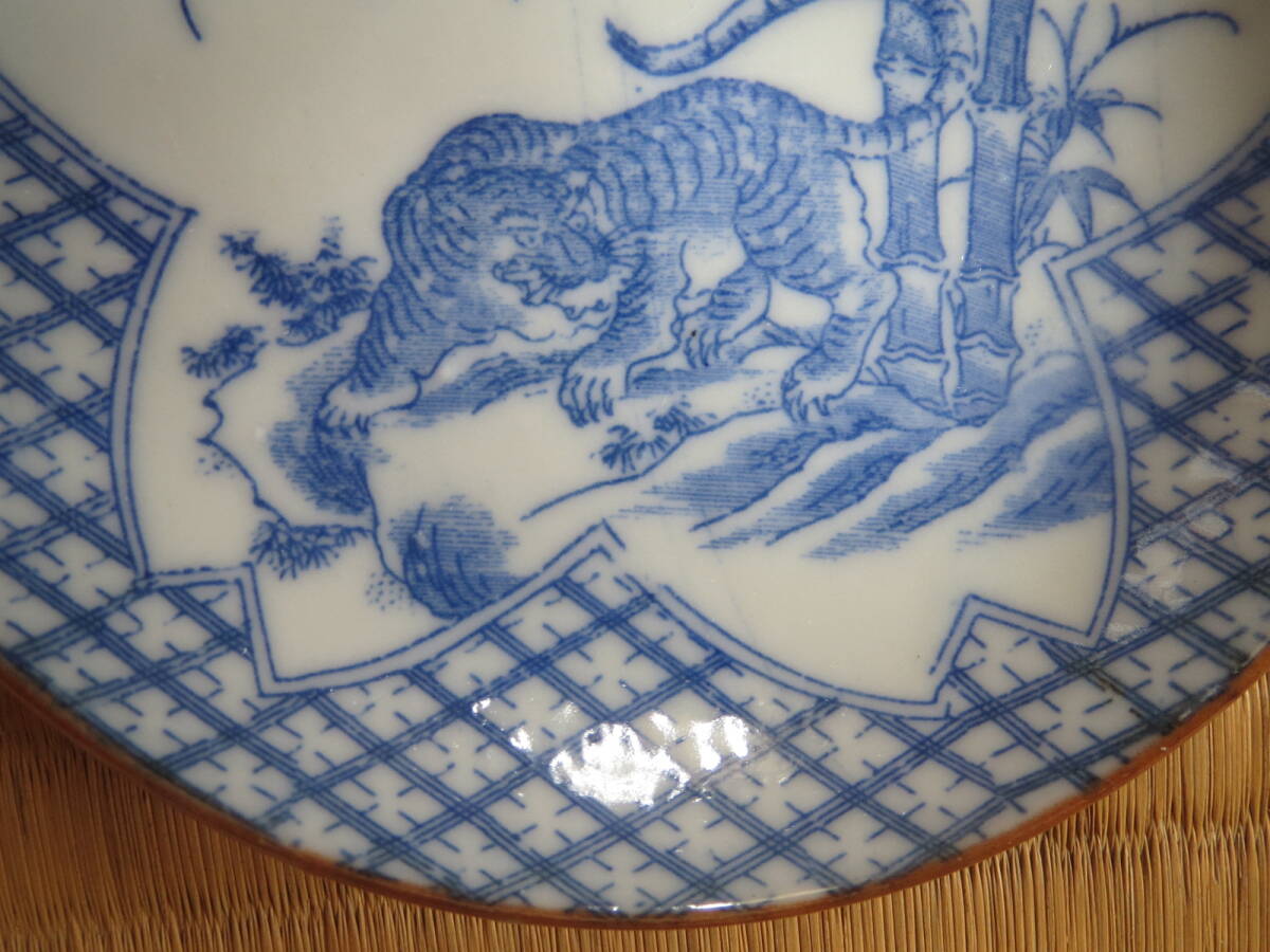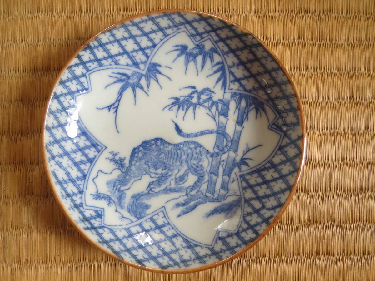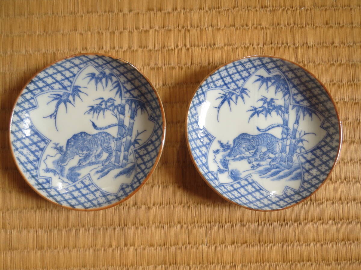 印版 皿  桜花囲み竹虎図 四ツ目菱 2枚 虎
