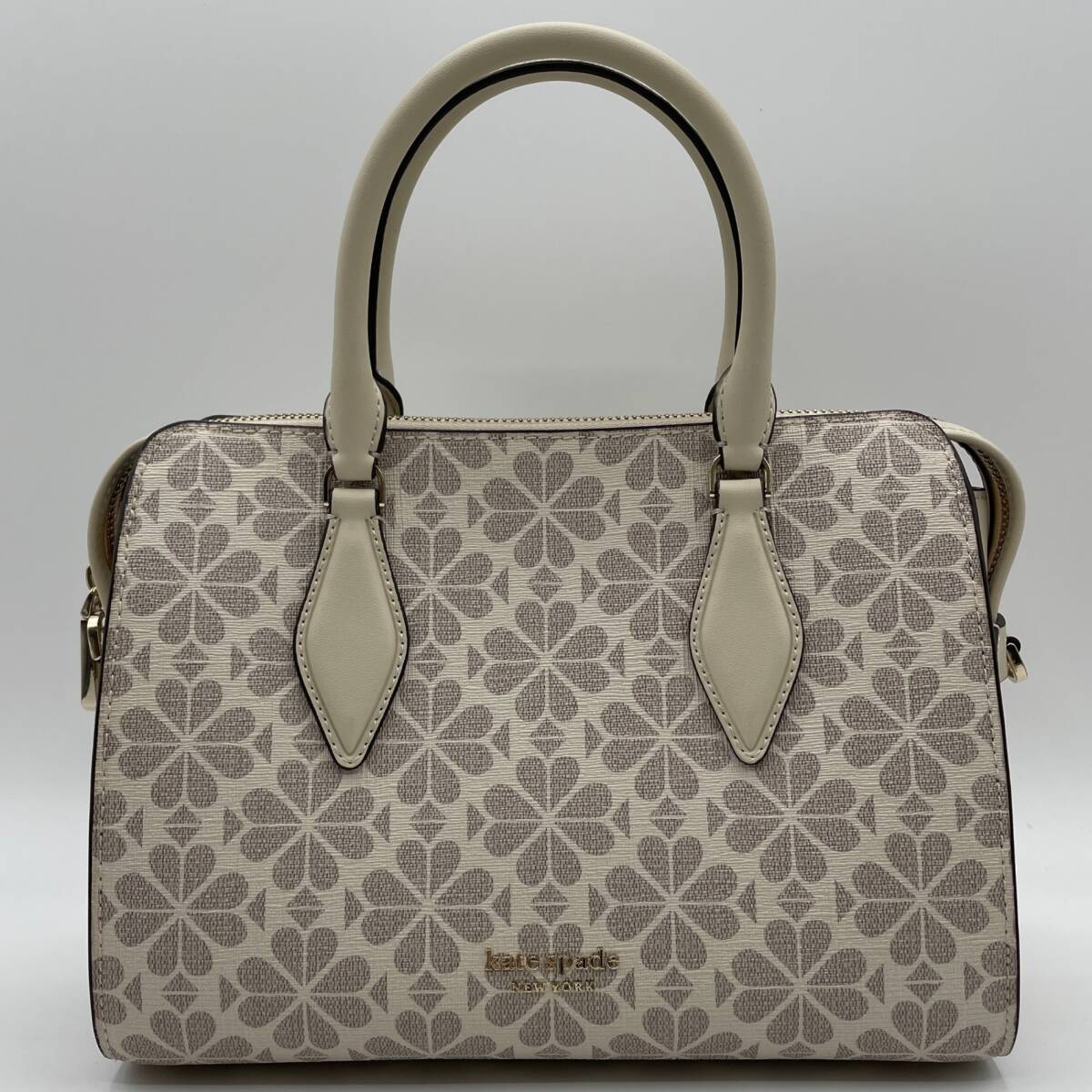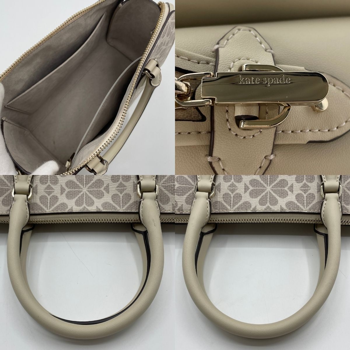 | 商品説明 | ☆ブランド名:ケイトスペード kate spade ☆形状:2Wayバッグ ハンドバッグ ショルダーバッグ ☆型番:PXR00077 ☆カラー:クリーム ☆サイズ(約):W26×H20×D10㎝、ハンドル32㎝、ショルダー124~137㎝ ☆付属品:本体、ショルダーストラップ ☆コメント:ハンドル部分に使用による汚れが見られますが、全体的に綺麗なバッグでございます。 |