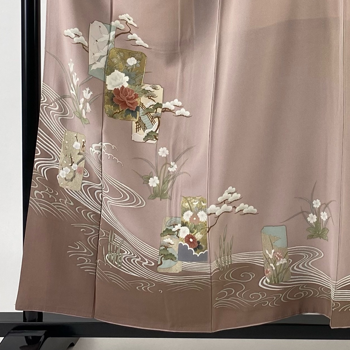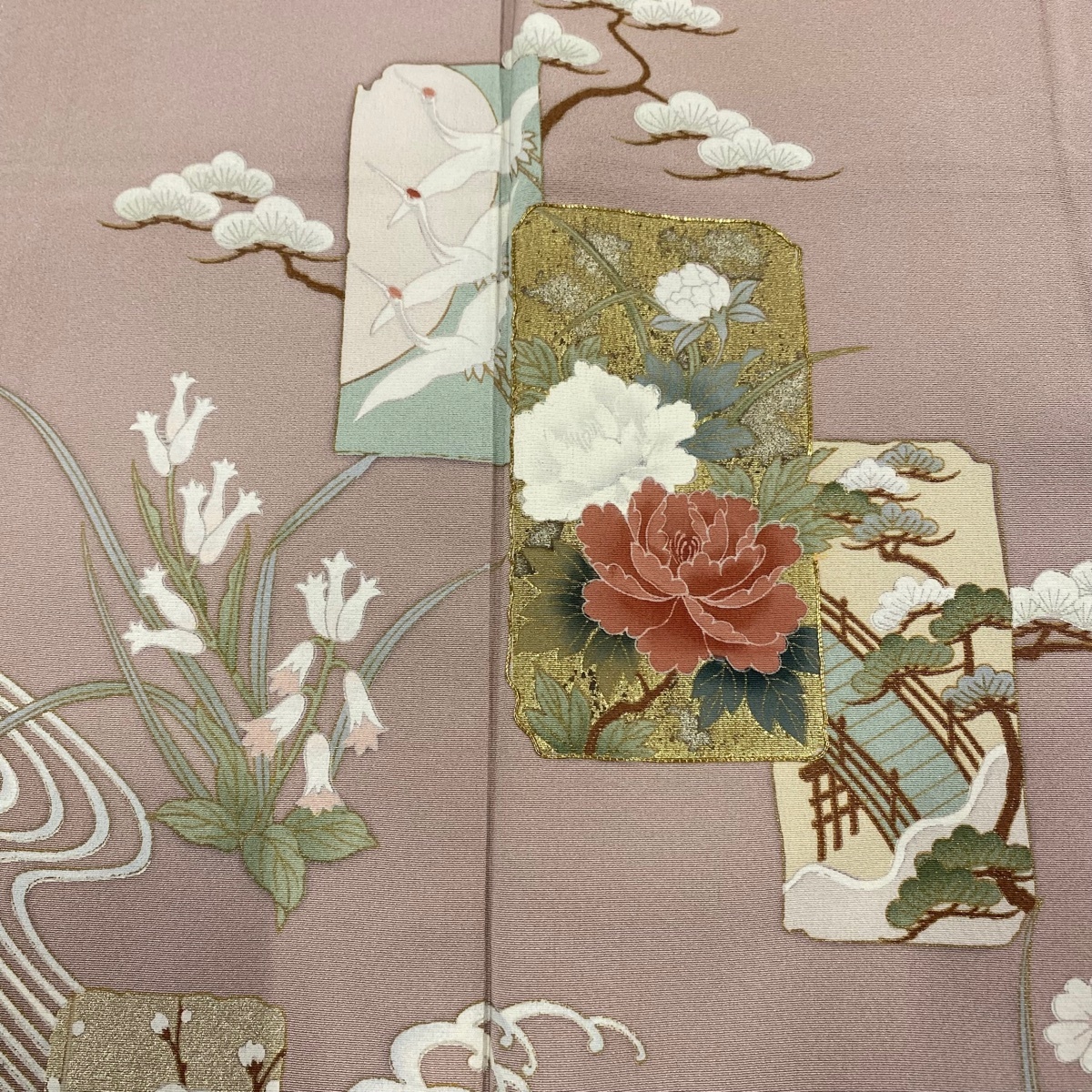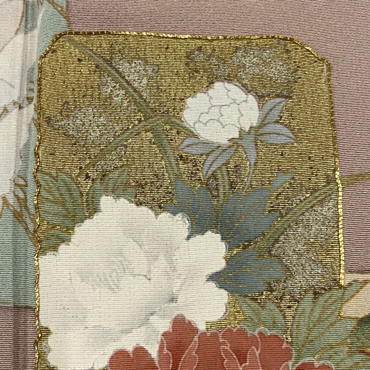 | 色留袖 秀品 短冊 花鳥 金糸 金銀彩 ピンク 袷 身丈158 裄丈64.5 M 正絹 【中古】 |