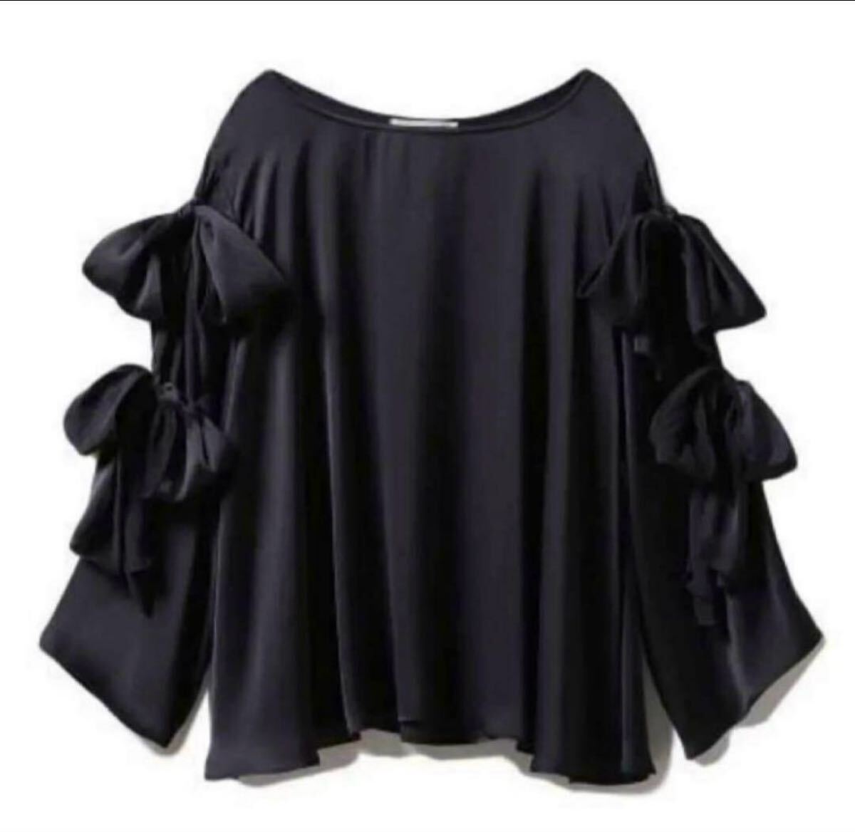 デザイン性が高いので、ベーシックなダークネイビーのブラウスですが、とても華やかに着られます☆