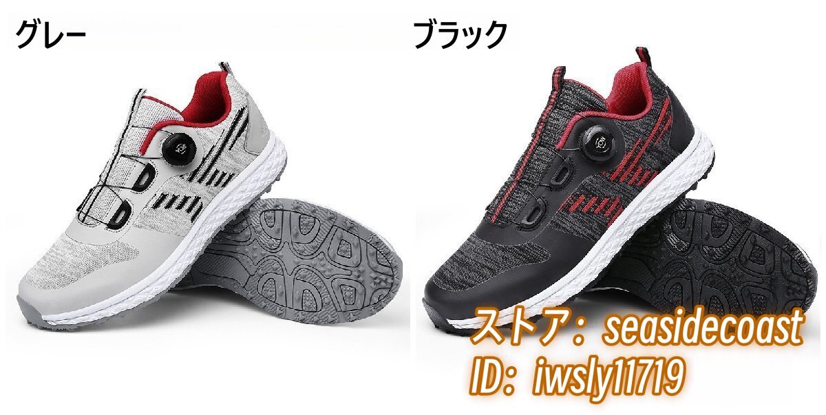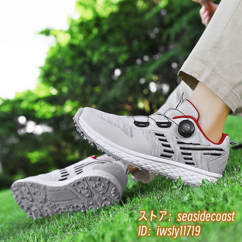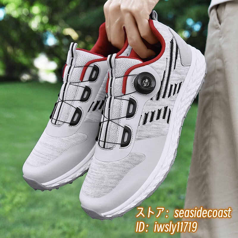 高級品 メンズ ゴルフシューズ 新品 ダイヤル式 運動靴 4E 幅広い Golf shoes スポーツシューズ フィット感 軽量 防滑 弾力性 灰色 24.5cm