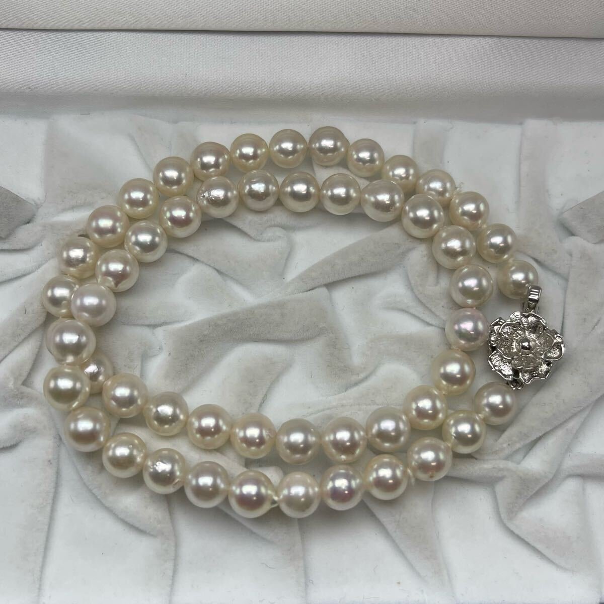 送料無料 オーロラ 花珠クラス あこや真珠 ネックレス アコヤ パール 7.5-8.0mm Pearl necklace 照り強 本真珠 【1764703-0617】