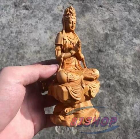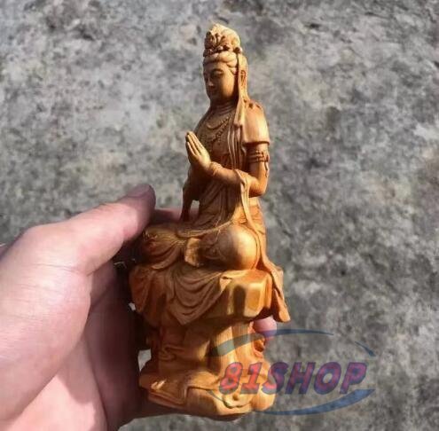 「81SHOP」仏教工芸品 自在観音菩薩座像  木彫仏像 合掌