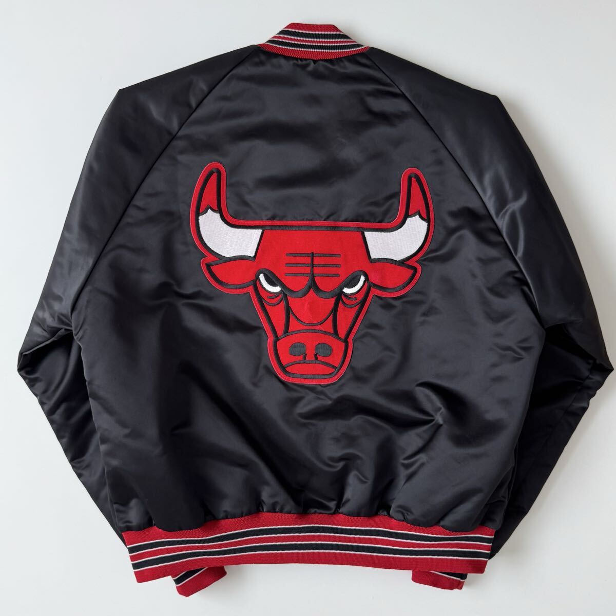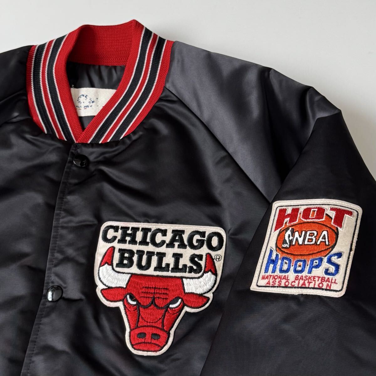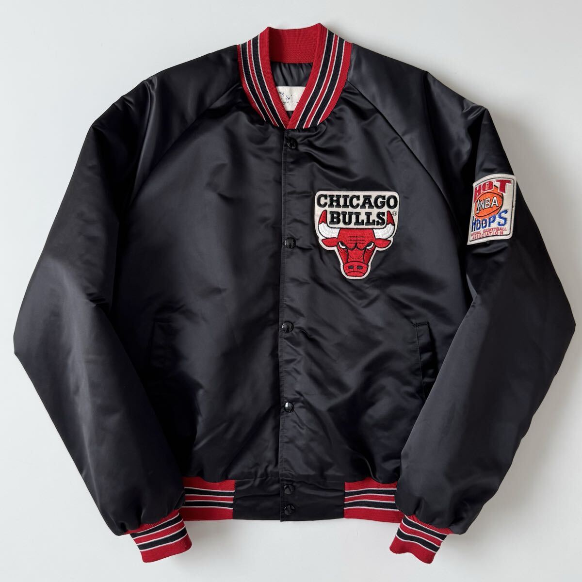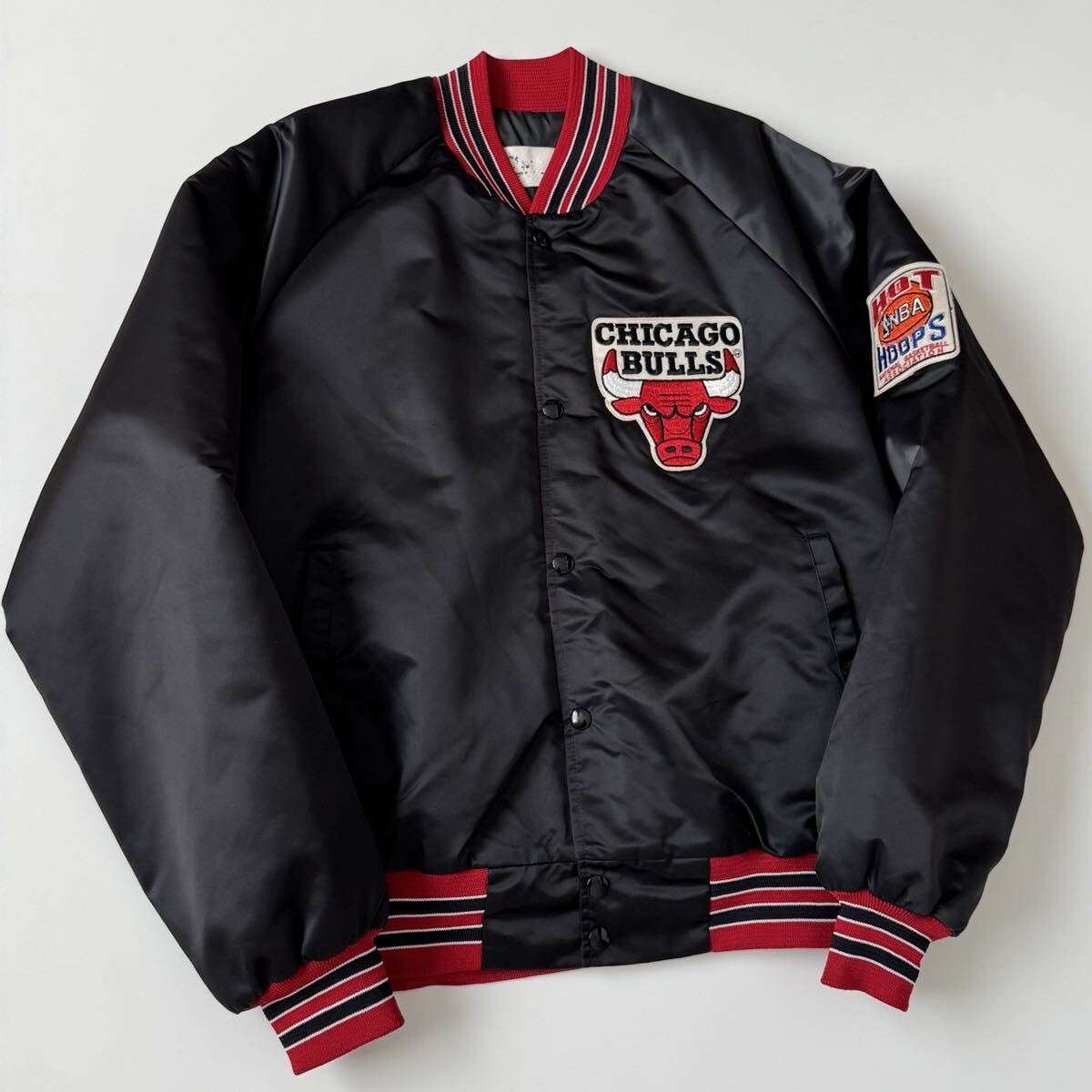 90s USA製 Chalk Line BULLS スタジャン L NBA シカゴ ブルズ アワード バーシティ ナイロン ジャケット ワッペン 黒 米国製 アメリカ製
