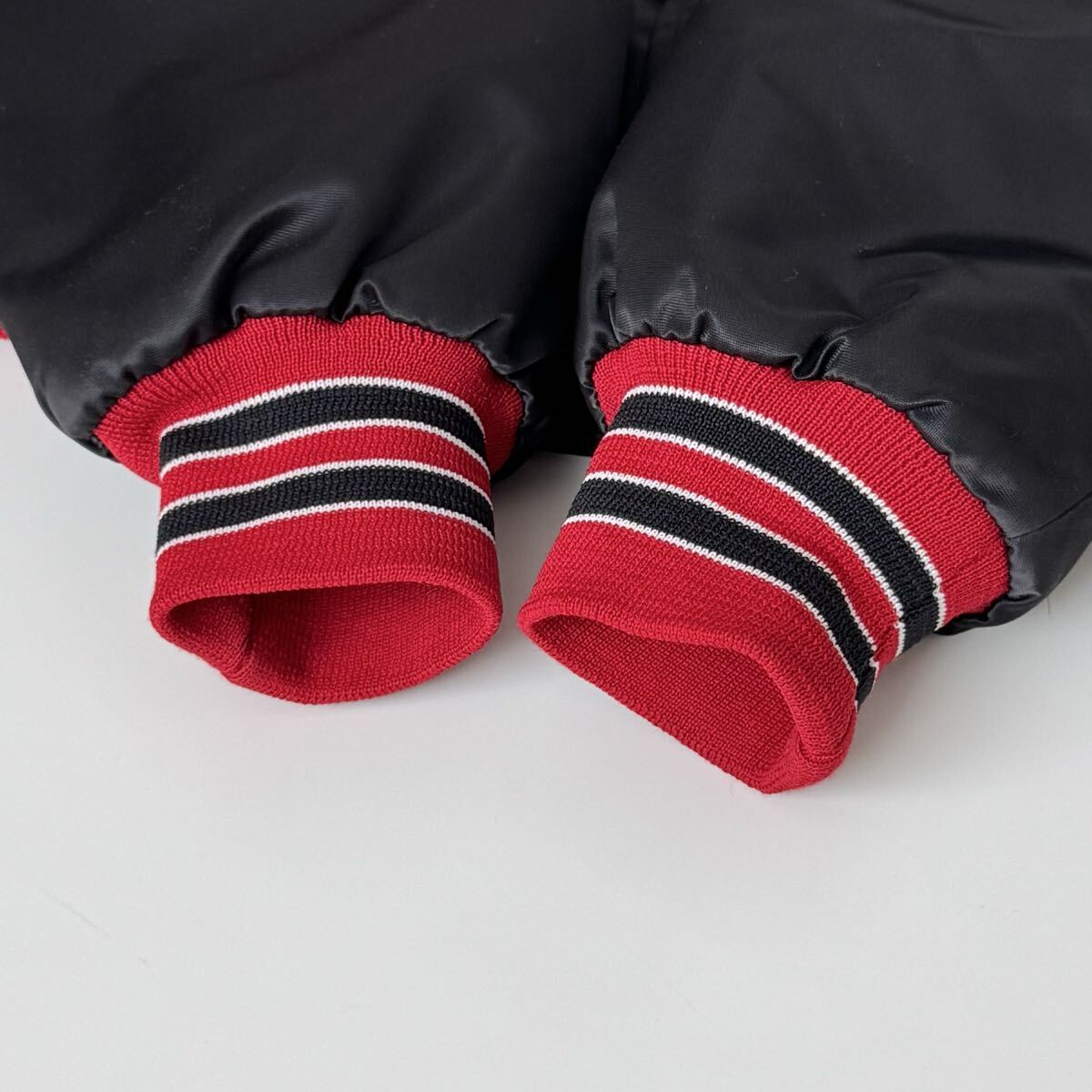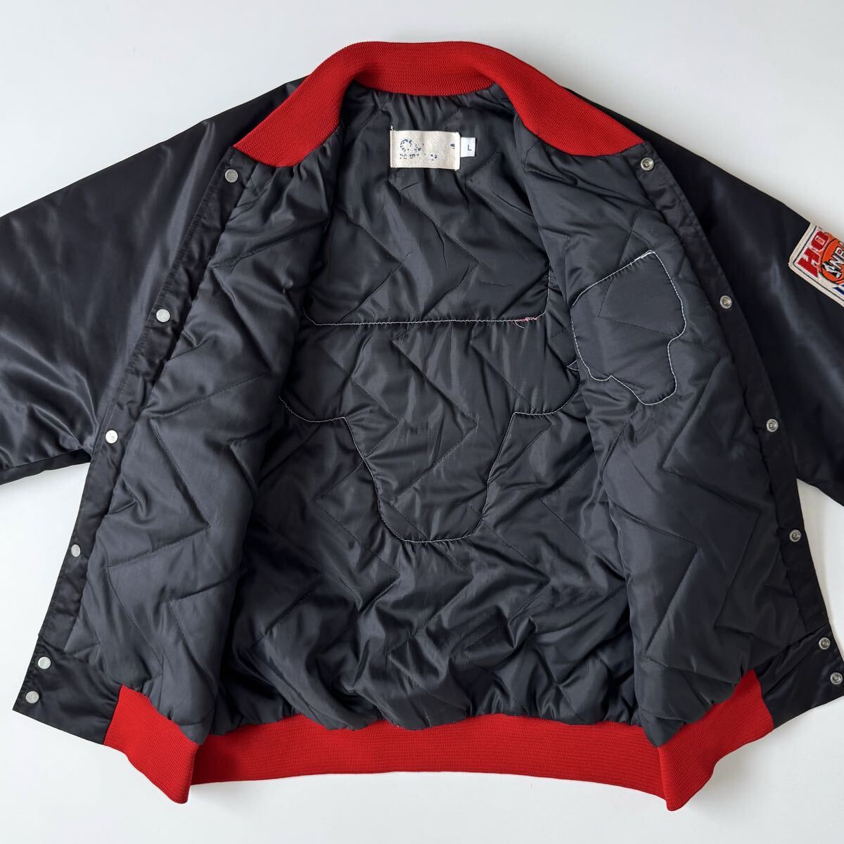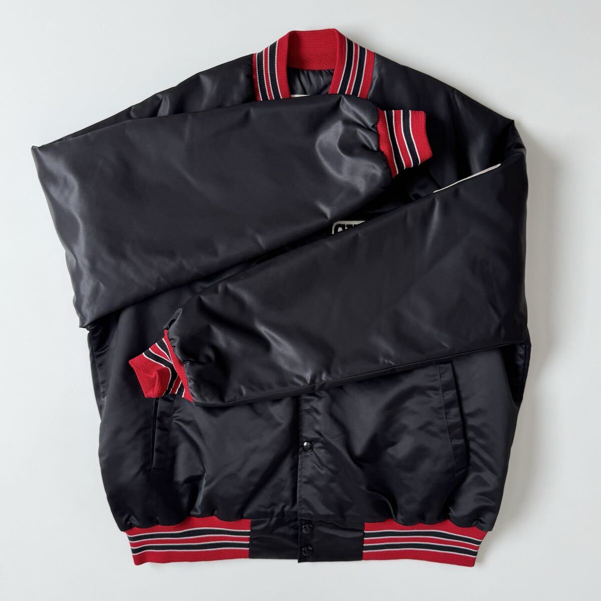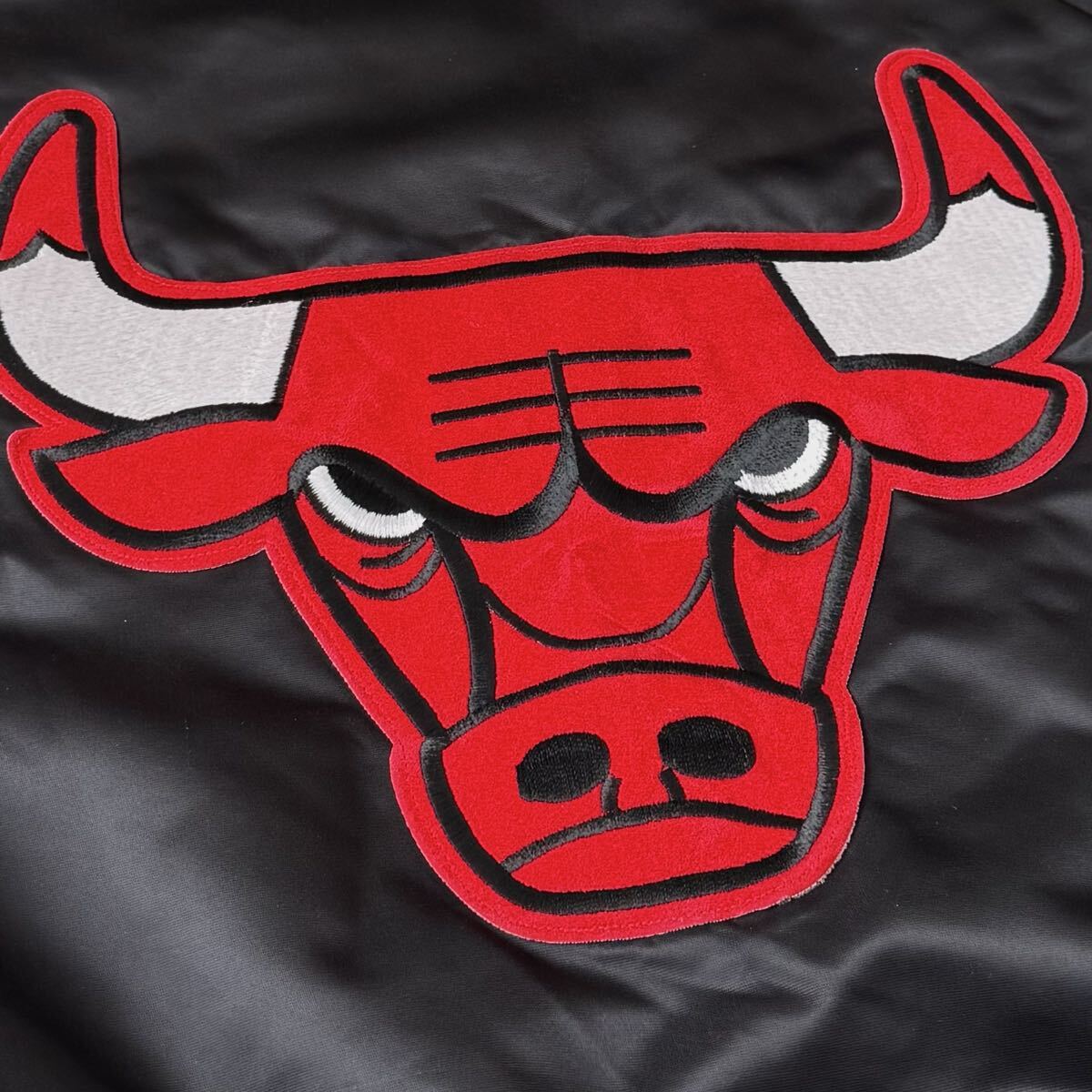 90s USA製 Chalk Line BULLS スタジャン L NBA シカゴ ブルズ アワード バーシティ ナイロン ジャケット ワッペン 黒 米国製 アメリカ製