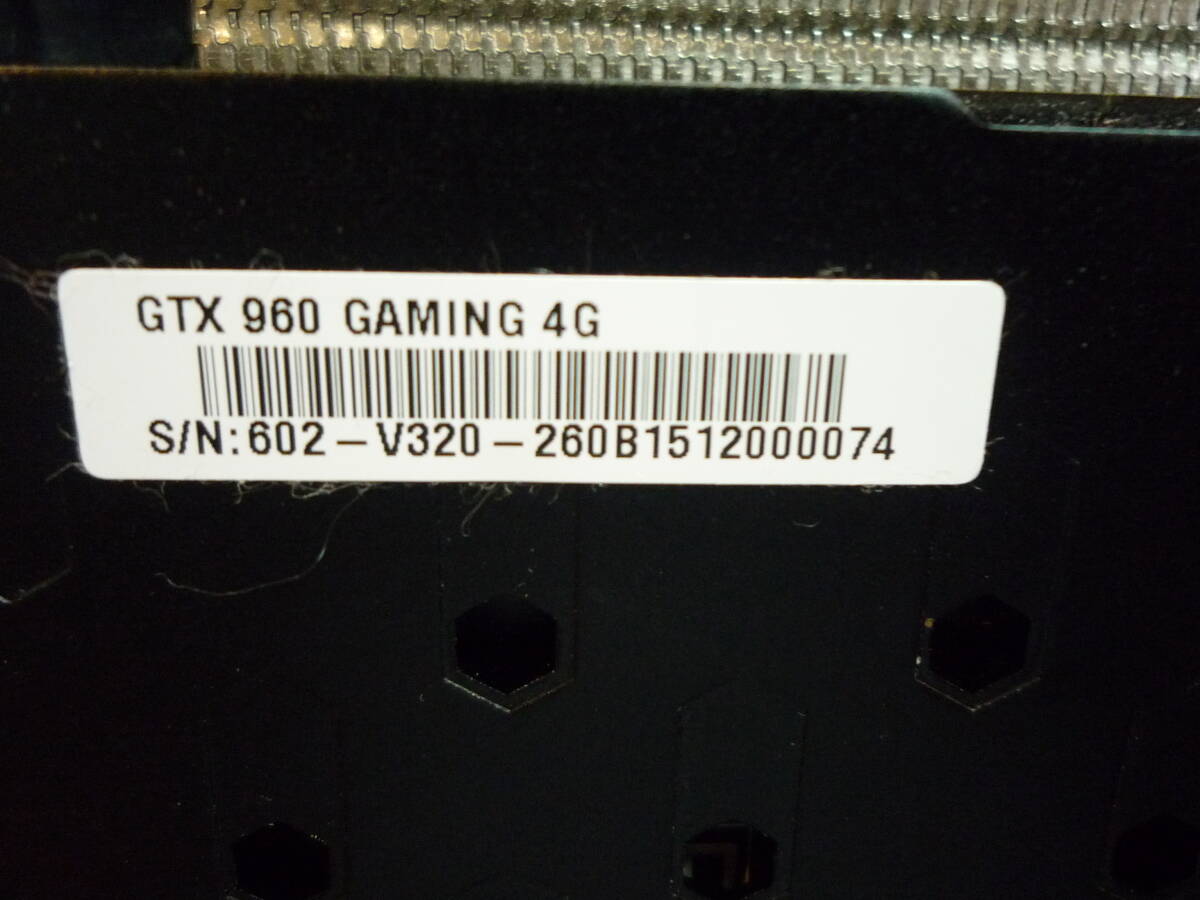 MSI GeForce GTX 960 GAMING 4G 中古動作品です。外すまで問題が無かったです。發熱が低くて良かったとの記憶があります。それなりの擦り傷、汚れなどの使用感があります。必要な方は如何でしょうか! ノークレーム・ノーリターンでお願いします。写真に写っているものはすべてです。よろしくお願いします。宅急便(EAZY)!宅急便で郵送したいと思います。よろしくお願いします。