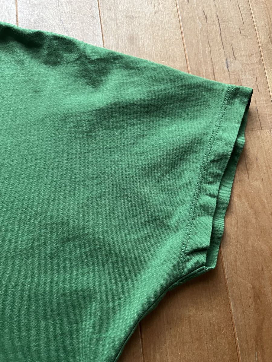 お色は抜群に美しく、発色の良いグリーンなので、デニムやチノとの相性も抜群です。