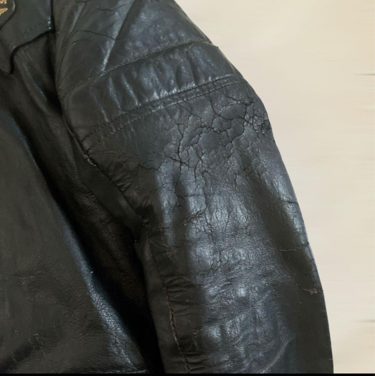 現代でも同じ現象がありますがライダースで一番購入されるカラーはもちろんブラック。50年以上前のモデルですので複数のひび割れなどダメージはありますが、それも味となっており、とてもかっこいいです。