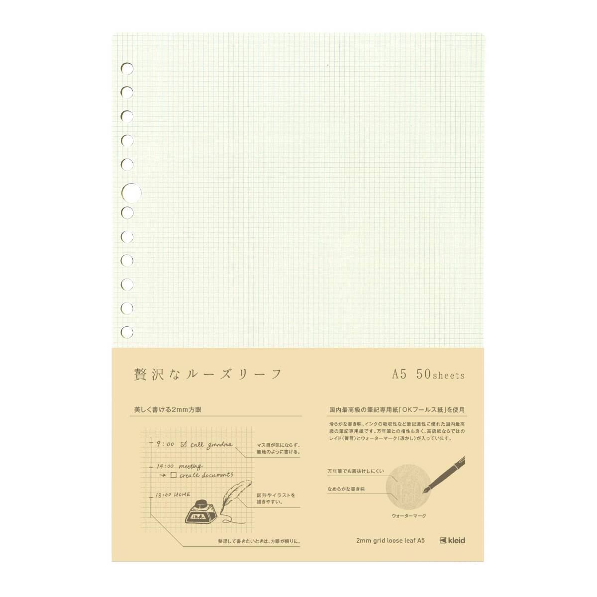 kleid ルーズリーフ 2ミリグリッドルーズリーフ A5 2mm方眼 20穴 50枚 クリーム 8431