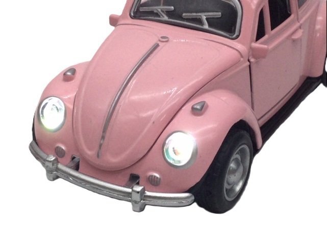 YINGZHAN TOYS社製 1/32 ワーゲン ビートル ピンク ヘッドライト点灯 エンジン音&クラクション ミュージック付き ミニカー プルバックアクション付きですので チョロQのように走らせる事が出来ます。 スケールは1/32 ボタン電池はお試し用のLR-41が3個、内蔵されております。 ミニカーサイズ:全長約12.5センチ×高さ約5センチ×幅約5.2センチ ボディはダイキャストメタル製。 シャーシや内装はプラスチック製。 車体の前部分(ボンネット付近)を上から押すとエンジンスタート音 クラクション音、さらに軽快なミュージックが流れます。 同時にヘッドライトがパカパカ点滅します。 フロントフード開閉可能(スペアタイヤ再現) 両サイドドア開閉可能。 VWのエンブレムは入っておりません。 ※こちらは箱入りではございませんのでご注意下さいませ。 ※開閉するドアも金属製ですが、薄く作られているので、 乱暴に開閉すると破損してしまう可能性がございますのでご注意くださいませ。 神経質な方にはお勧めできません *1台1台検品し、丁寧に梱包しておりますが、 輸入時からの微かな汚れ、傷がある場合がありますのでご了承下さい。 |