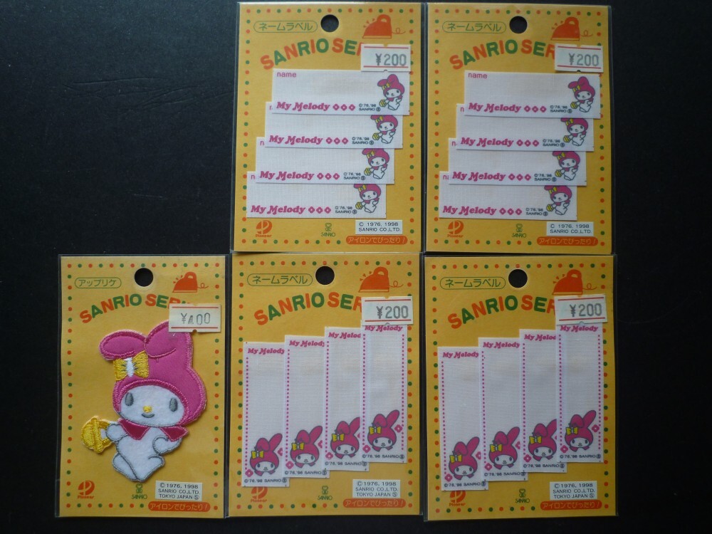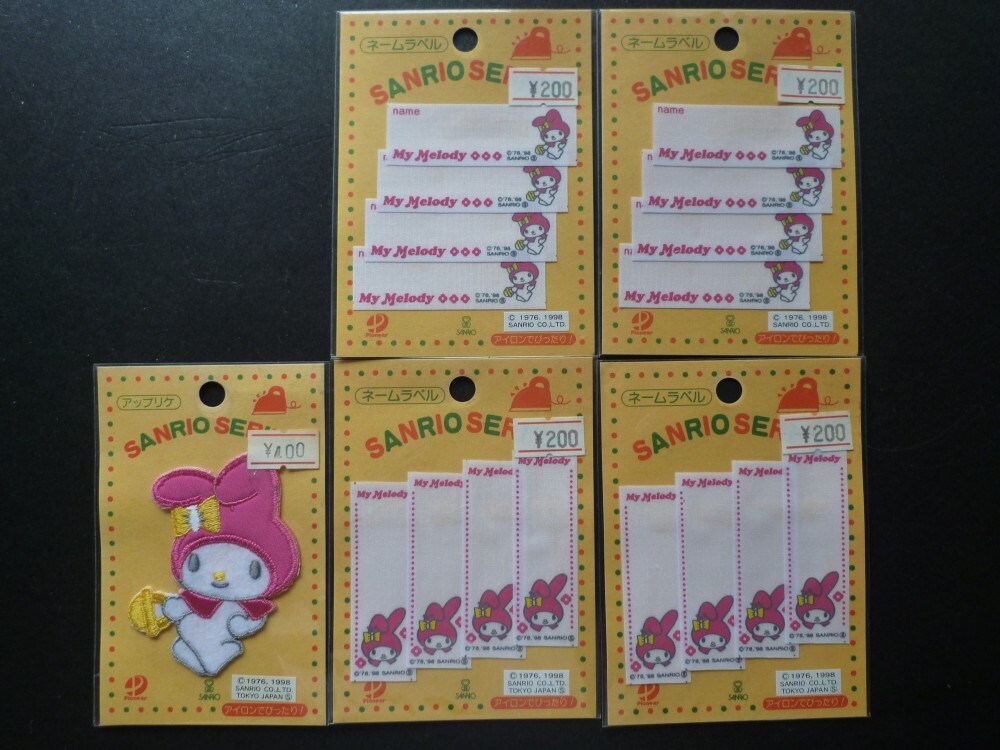 マイメロディのアップリケが1枚とネームラベルが2種類の計5枚になります。