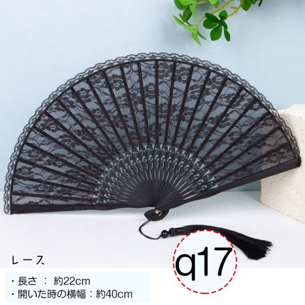 (q17番)レディース 扇子 6寸 扇子 女性用 ブラック レース 扇子袋付き おしゃれ おすすめ かわいい 扇子 絹扇子 高級 和風扇子 人気