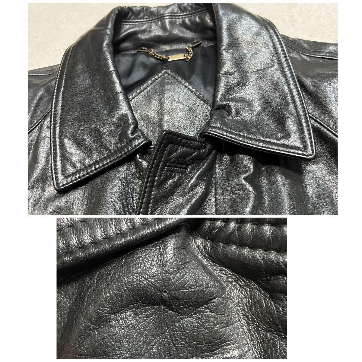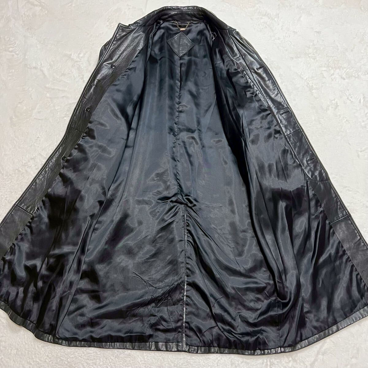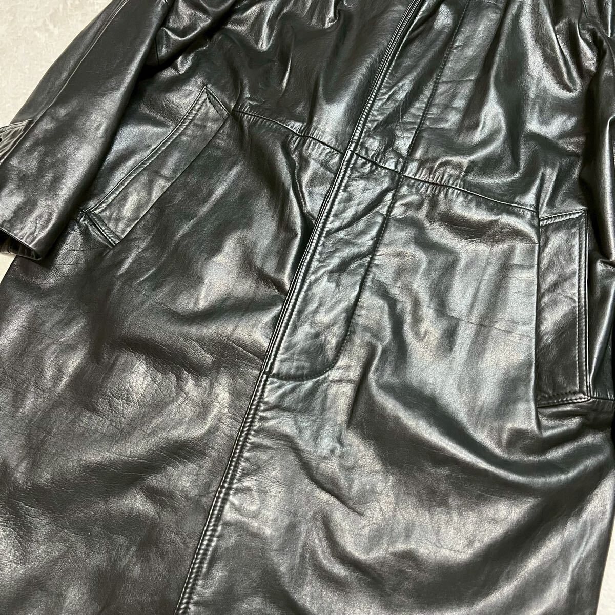 XL相当 【着丈100cm超 カウレザー】レザーコート ステンカラー レザージャケット 牛革 本革 ブラック 大きいサイズ ロングコート vintage