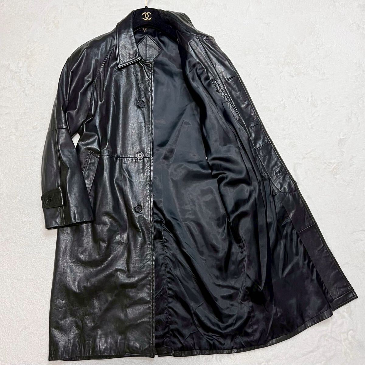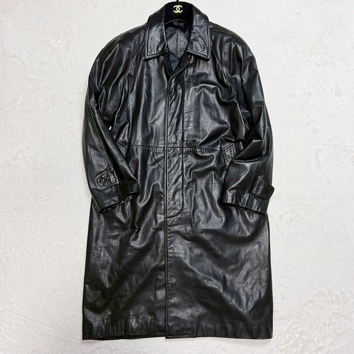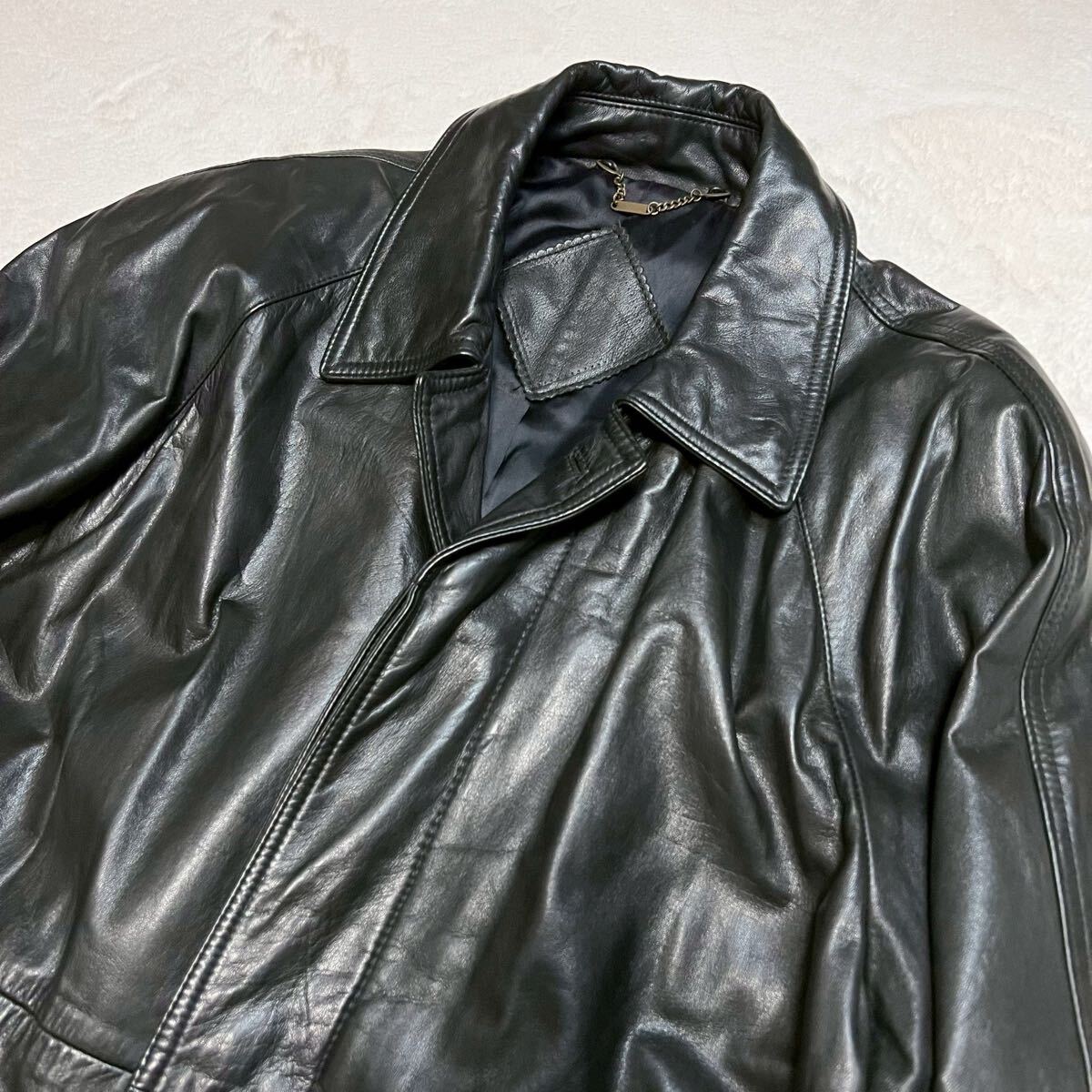 XL相当 【着丈100cm超 カウレザー】レザーコート ステンカラー レザージャケット 牛革 本革 ブラック 大きいサイズ ロングコート vintage