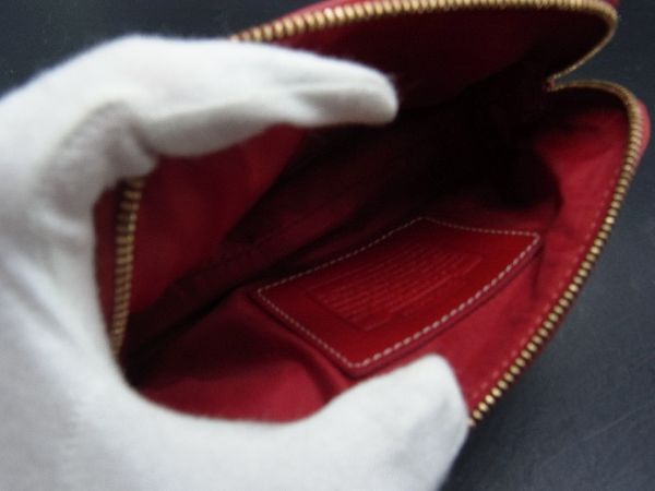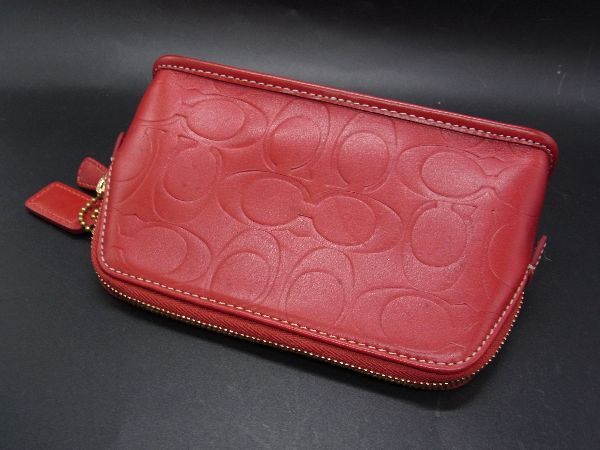 ■美品■ COACH コーチ シグネチャー レザー ポーチ メイクポーチ 化粧ポーチ マルチケース レッド系 DH1427
