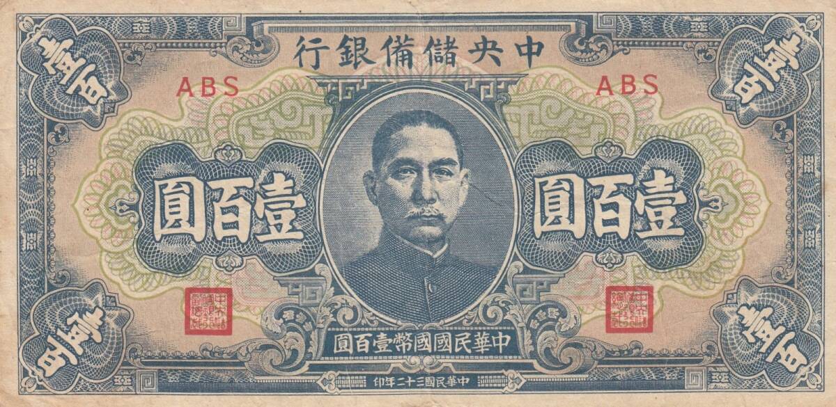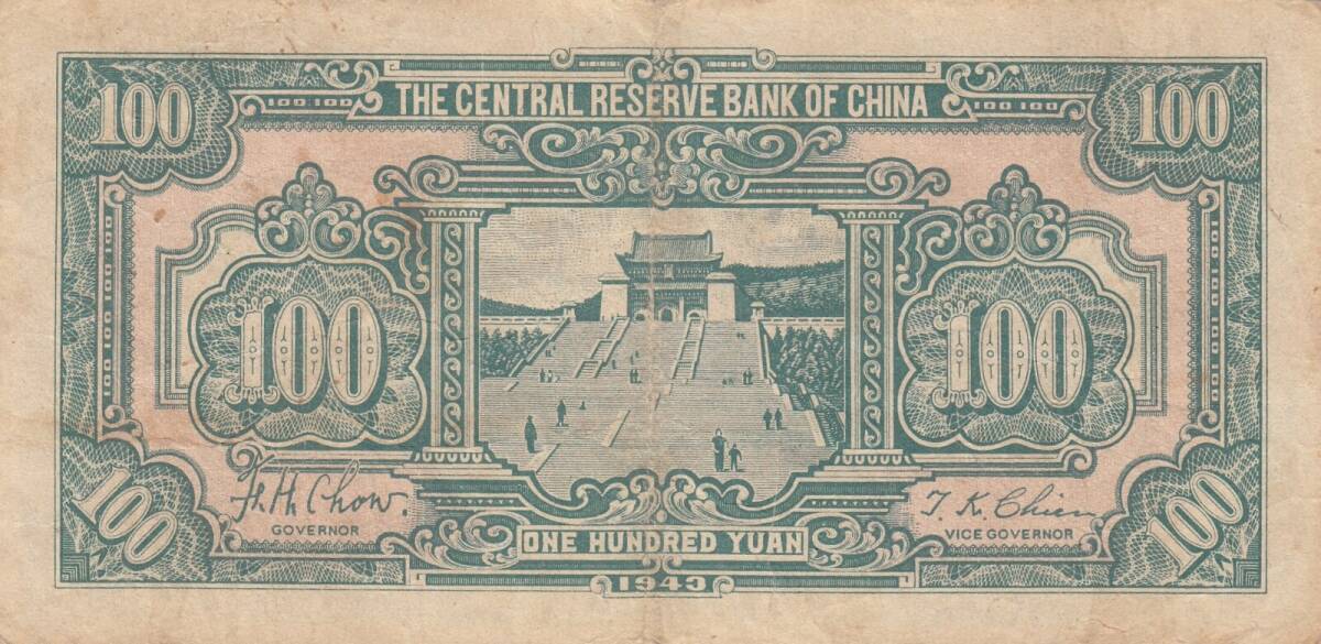 中国 中央儲備銀行 100円 1943年 海外 外国 貨幣 紙幣 古札 China