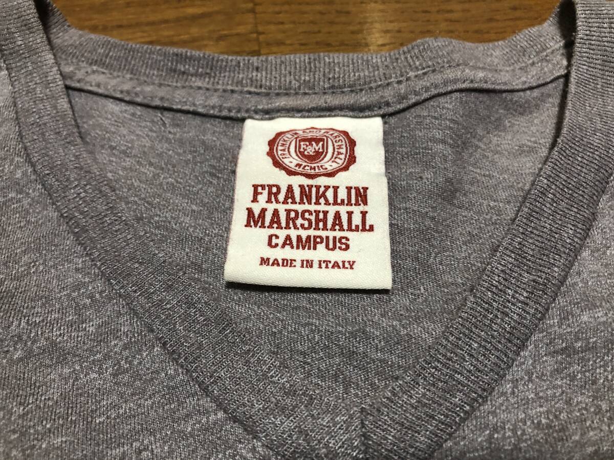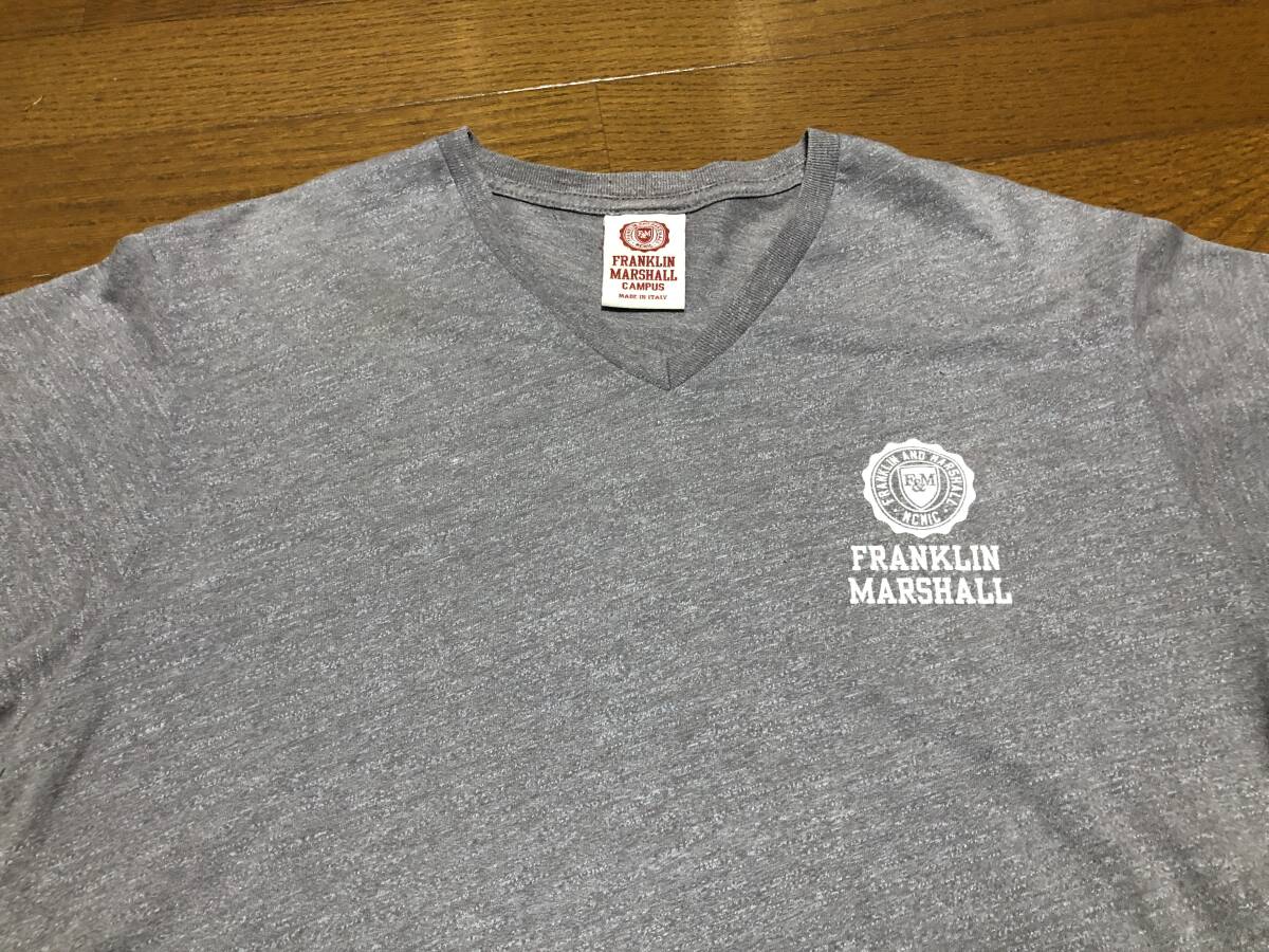 ★即決★イタリア製★FRANKLIN&MARSHALL フランクリン&マーシャル★半袖VネックTシャツ★Mサイズ★グレー★F&M★カレッジT★送料230円★