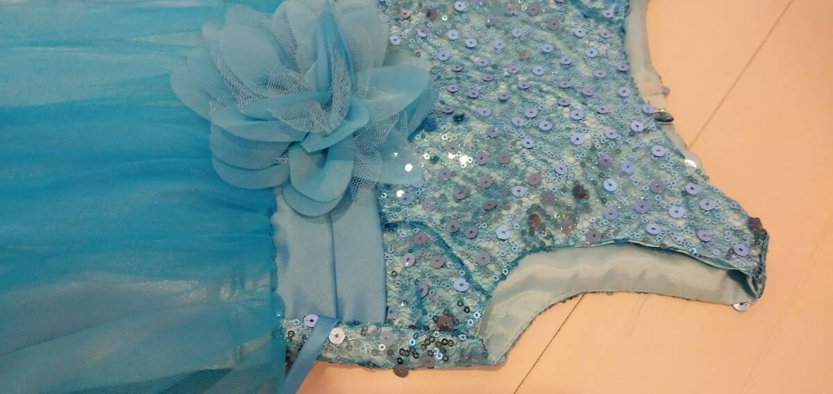 キッズドレス ノースリーブ ブルー 5/6歳 120くらい 発表会 七五三 結婚式 キラキラ 送料無料 | |||