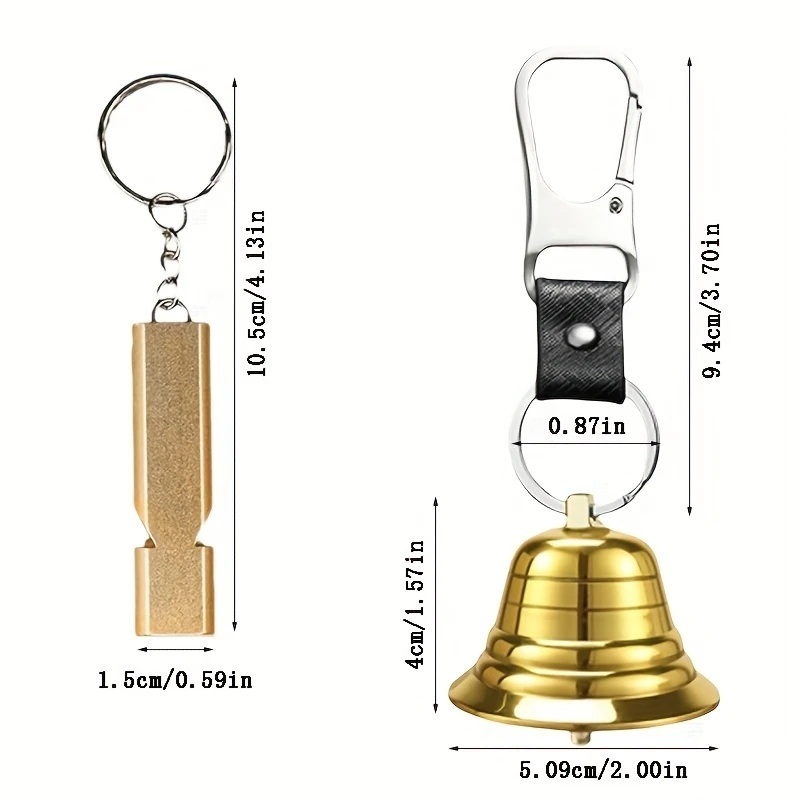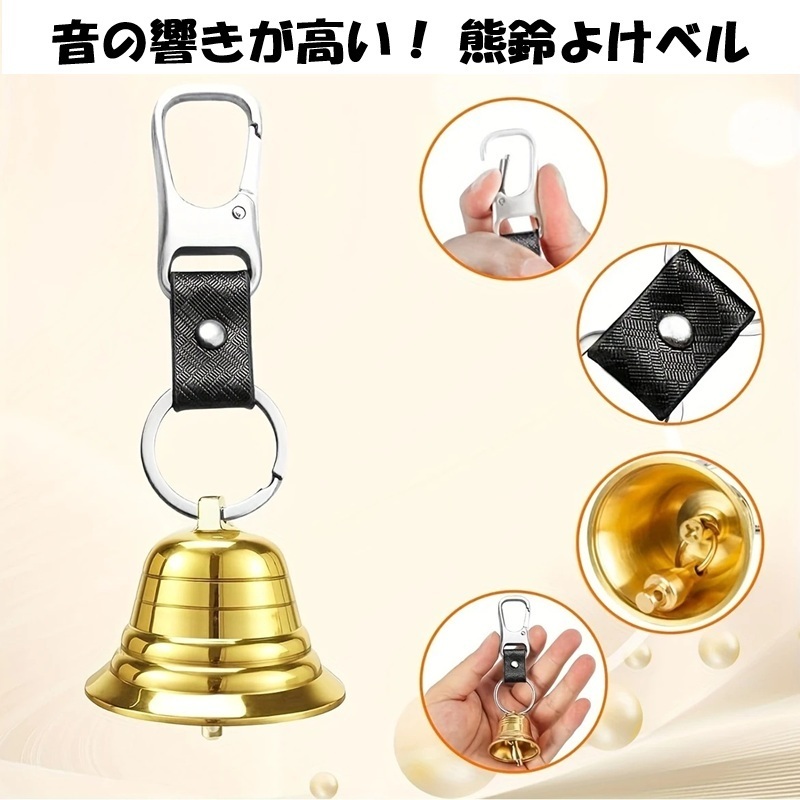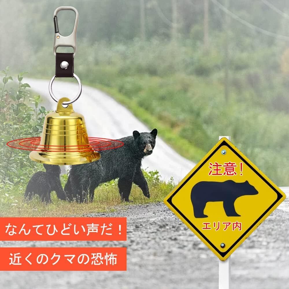 【丈夫な真ちゅう製の熊鈴】:熊鈴は頑丈な真ちゅう製で、金色と光沢があり、わずかな衝撃でも変形しません。