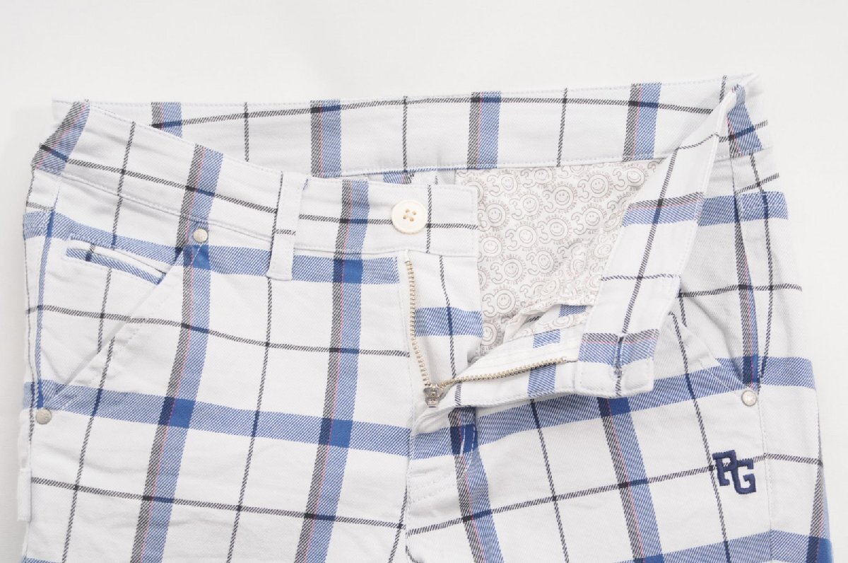 coco 中古【SALE】パーリーゲイツ レディース パンツ 0(S) 白×青×黒 ストレッチ チェック柄レターパックプラス発送可 70643