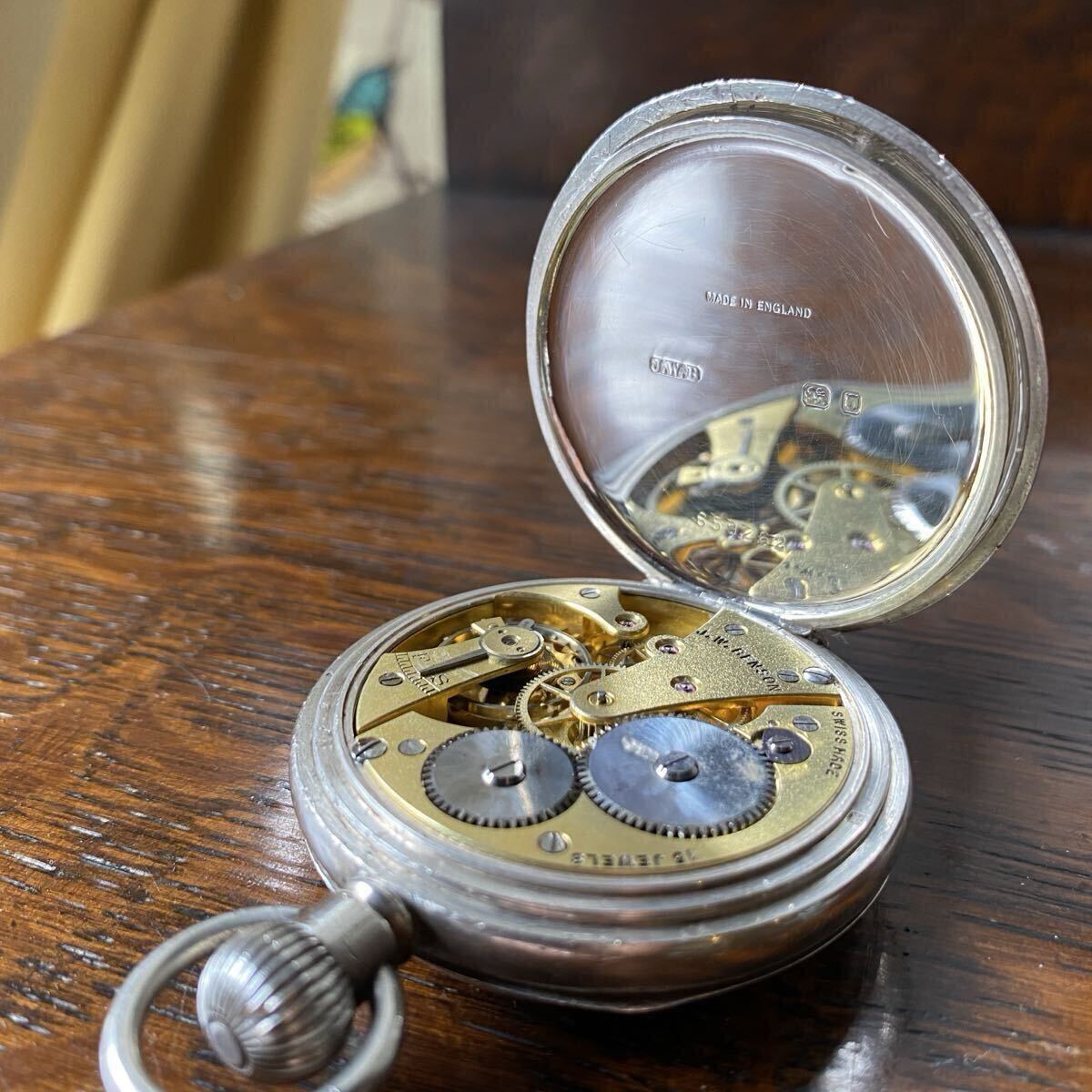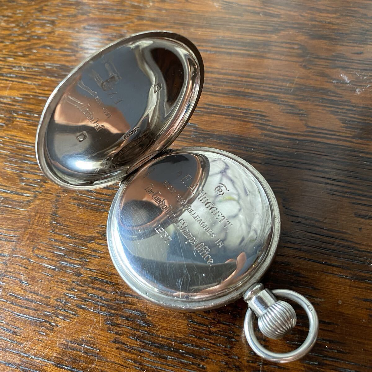 ケースは銀無垢で、1936年ロンドンのホールマークがあります。