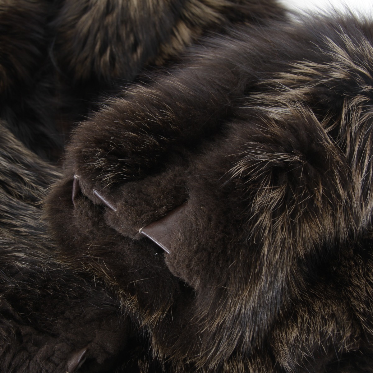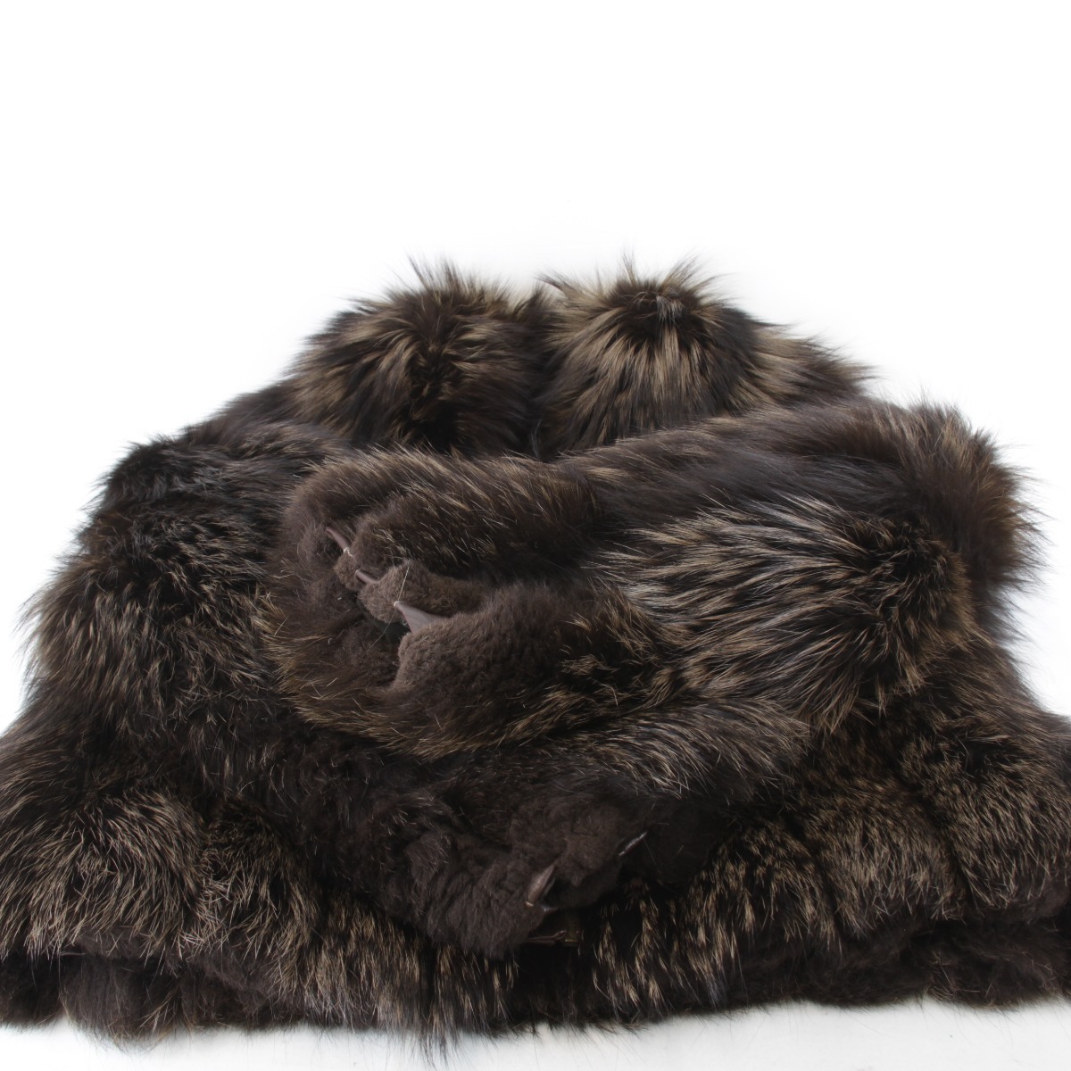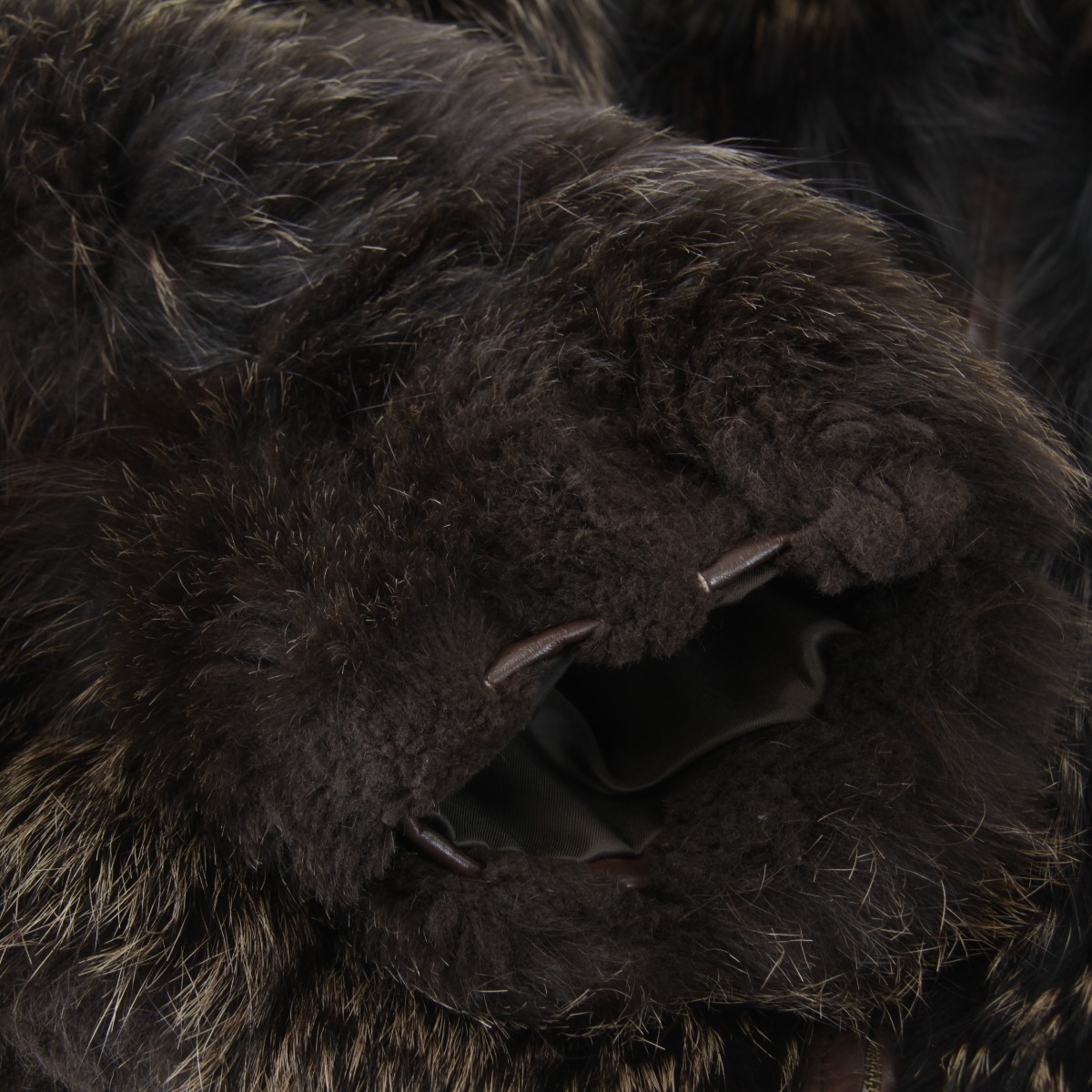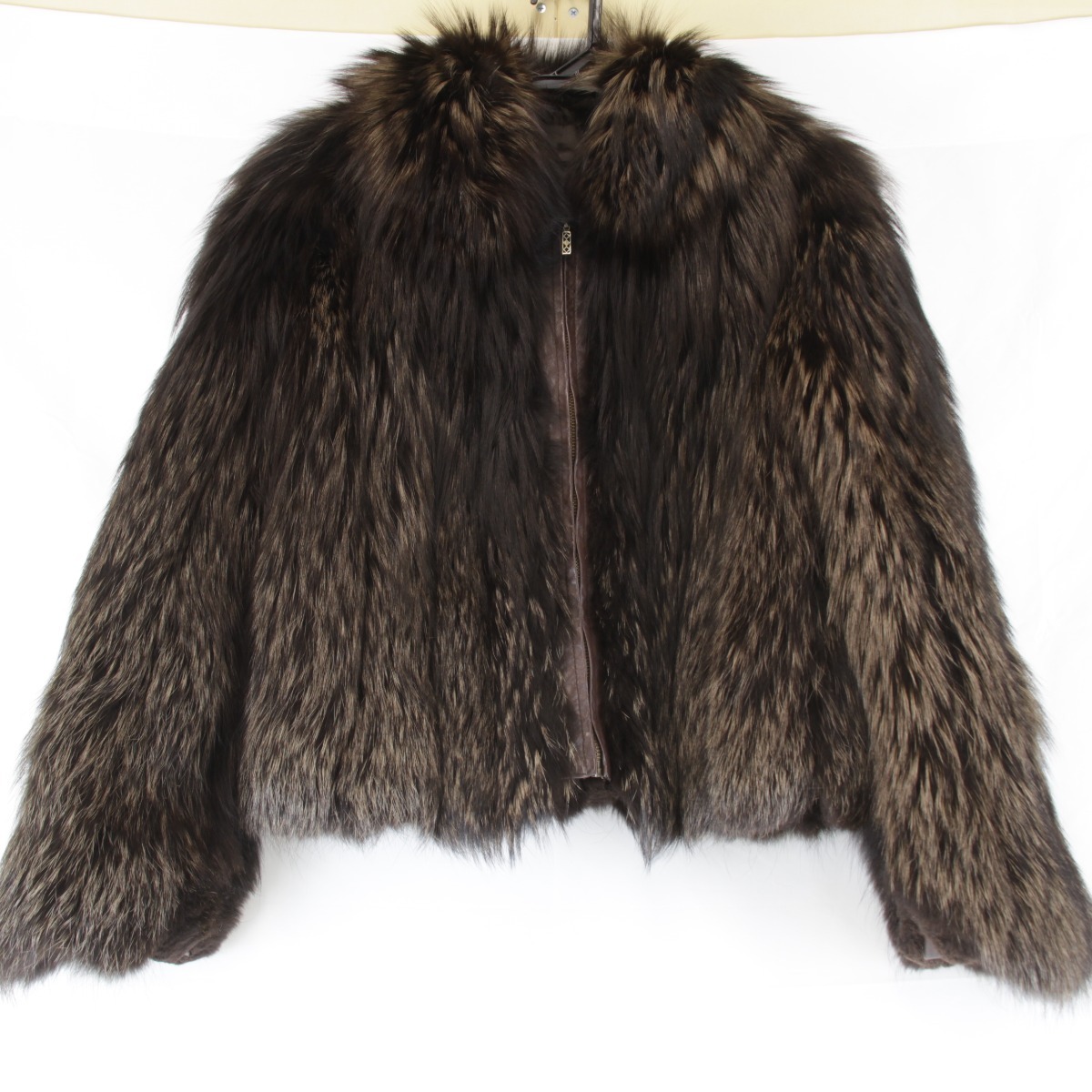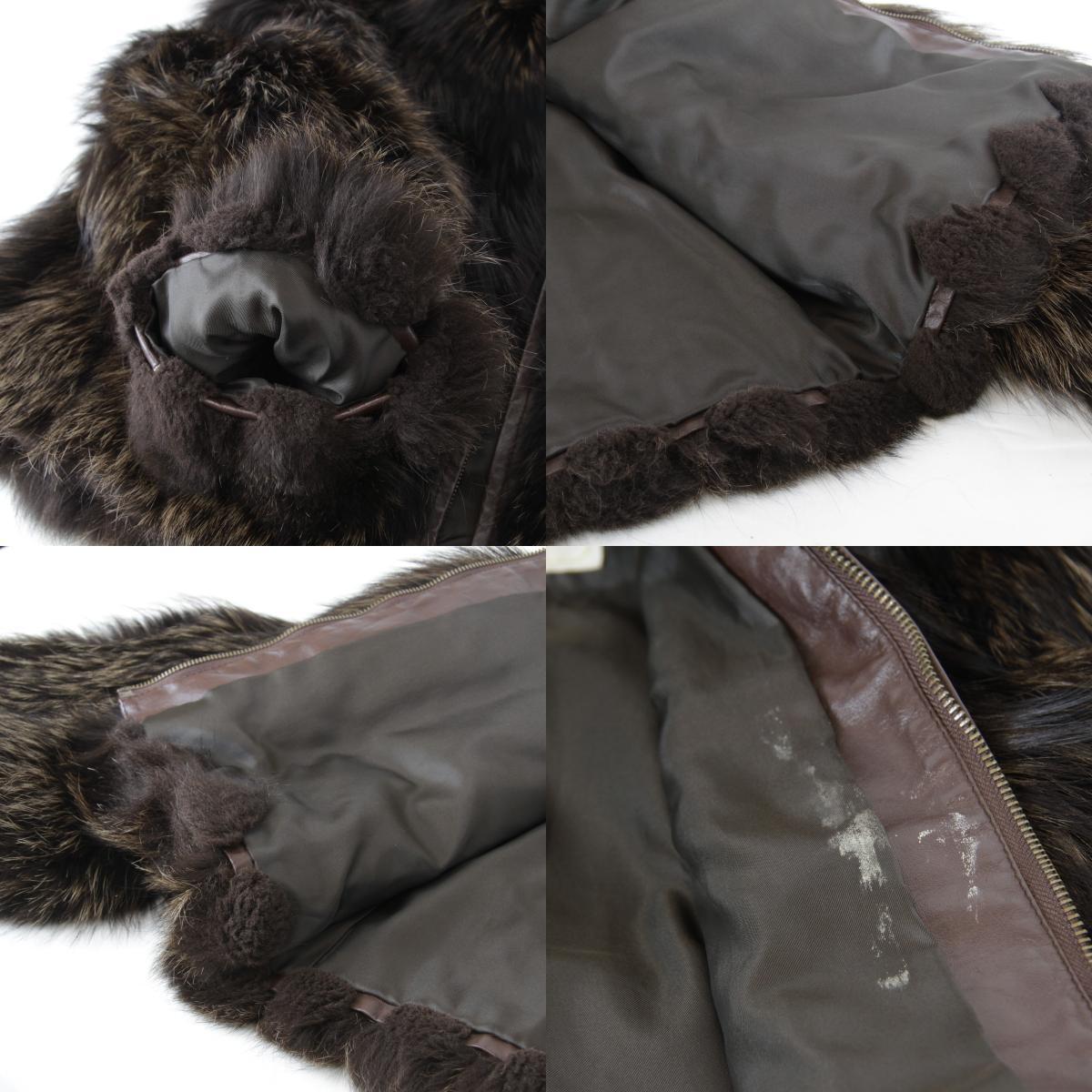 BC | 表面:スレ 内側:汚れ、スレ ファスナー部分:錆び 状態コメント:内側の向かって右側に白い汚れが目立ちます。裏地に毛玉が少々できています。内側に面した裾部分、袖部分の毛皮の刺毛がスレにより切れたり、綿毛が固まってしまっています。その他の部分はボリュームがあり艶々としていてきれいな状態です。ファスナー部分に錆びがございますがご使用に問題はございません。ラクーンかタヌキの毛皮のようですが、タグ等に明記はございません。 |