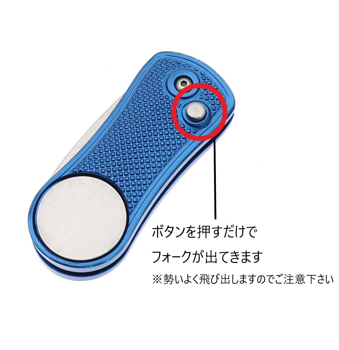 グリーンフォーク 折りたたみ ブルー ゴルフ グッズ マーカー ピッチマーク 修復 ゴルフマナー 収納タイプ おりたたみ