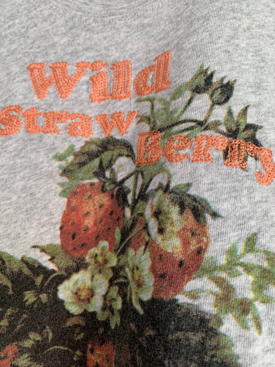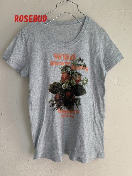 ◆A18◆ROSEBUD ローズバッド 綿100% ワイルドストロベリー転写プリント/刺繍 半袖Tシャツ アッシュグレー
