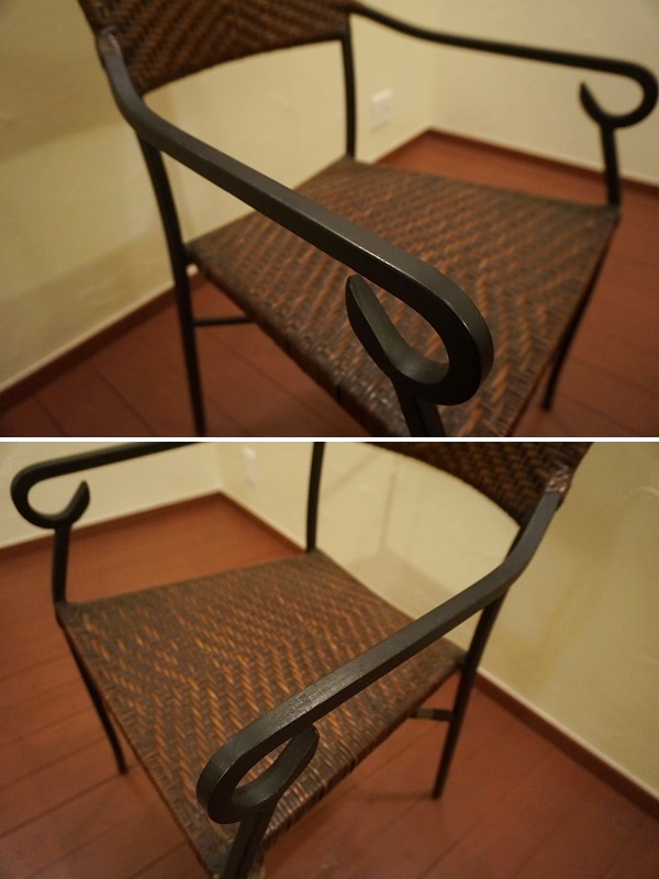 アンティーク ラタン アイアン 鉄製 アームチェア 椅子 イス リゾート ラグジュアリー ガーデンチェア ガーデニング ディスプレイ 店舗什器