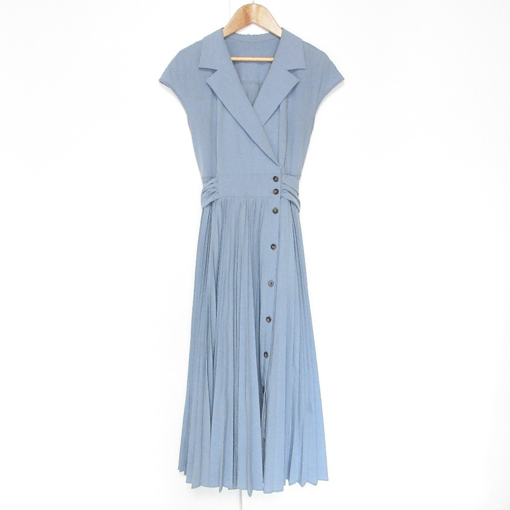 良品 21AW Apuweiser-riche アプワイザーリッシェ トレンチライクプリーツワンピース ロングドレス 1 ライトブルー