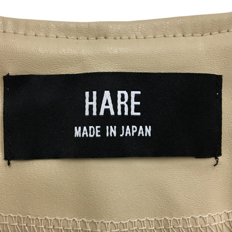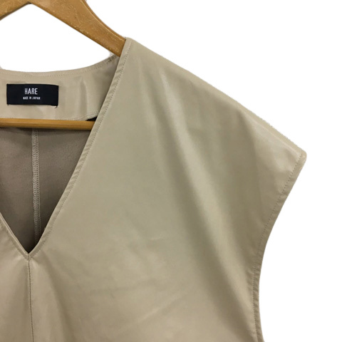 ハレ HARE ベスト Vネック プルオーバー フェイクレザー リボン 無地 ノースリーブ F ベージュ メンズ
