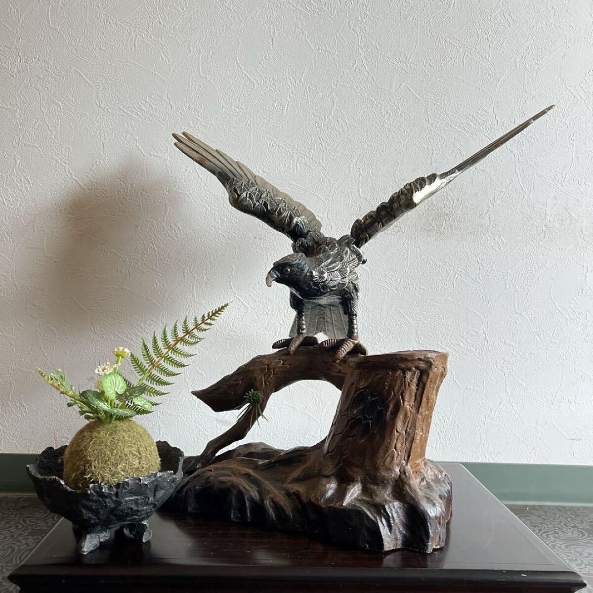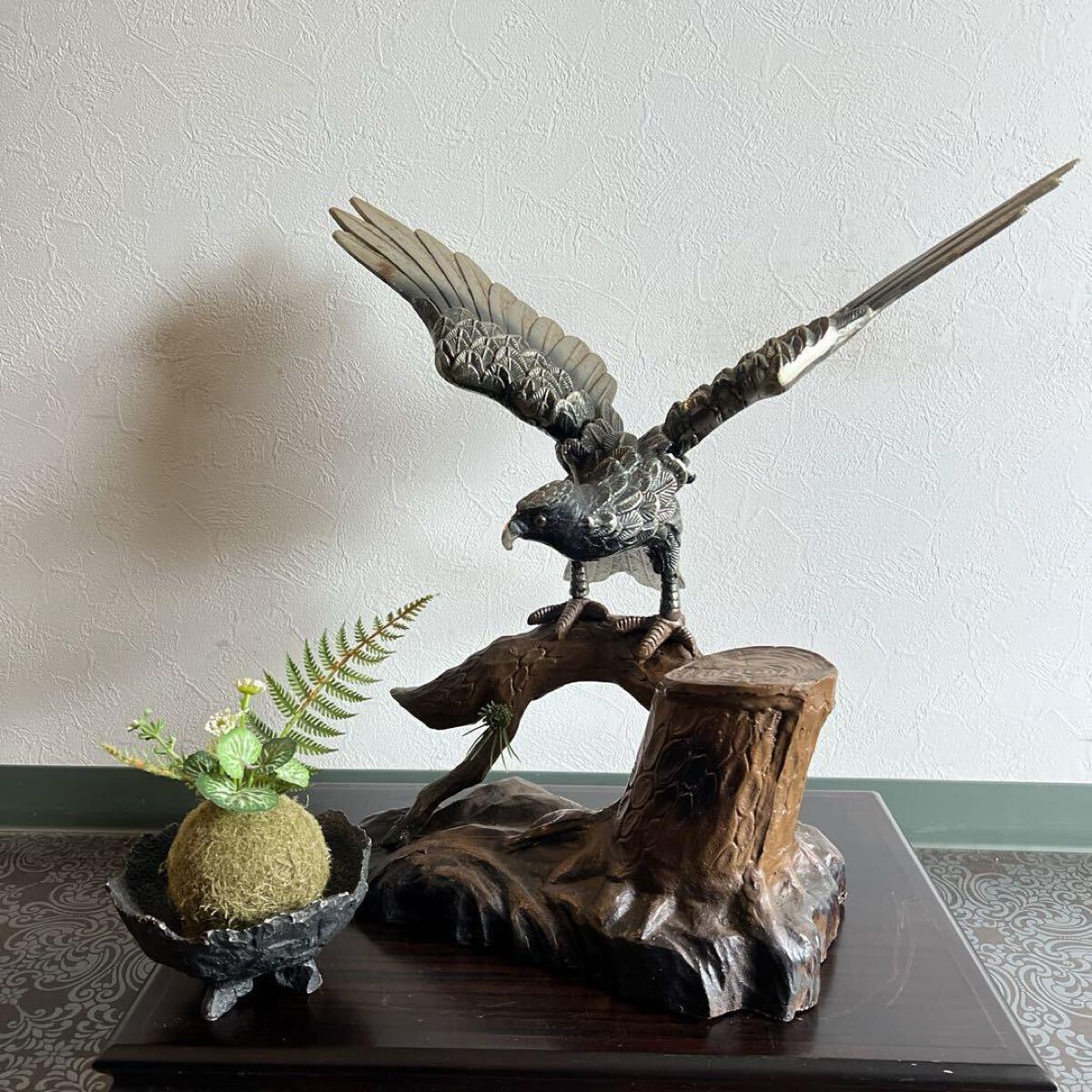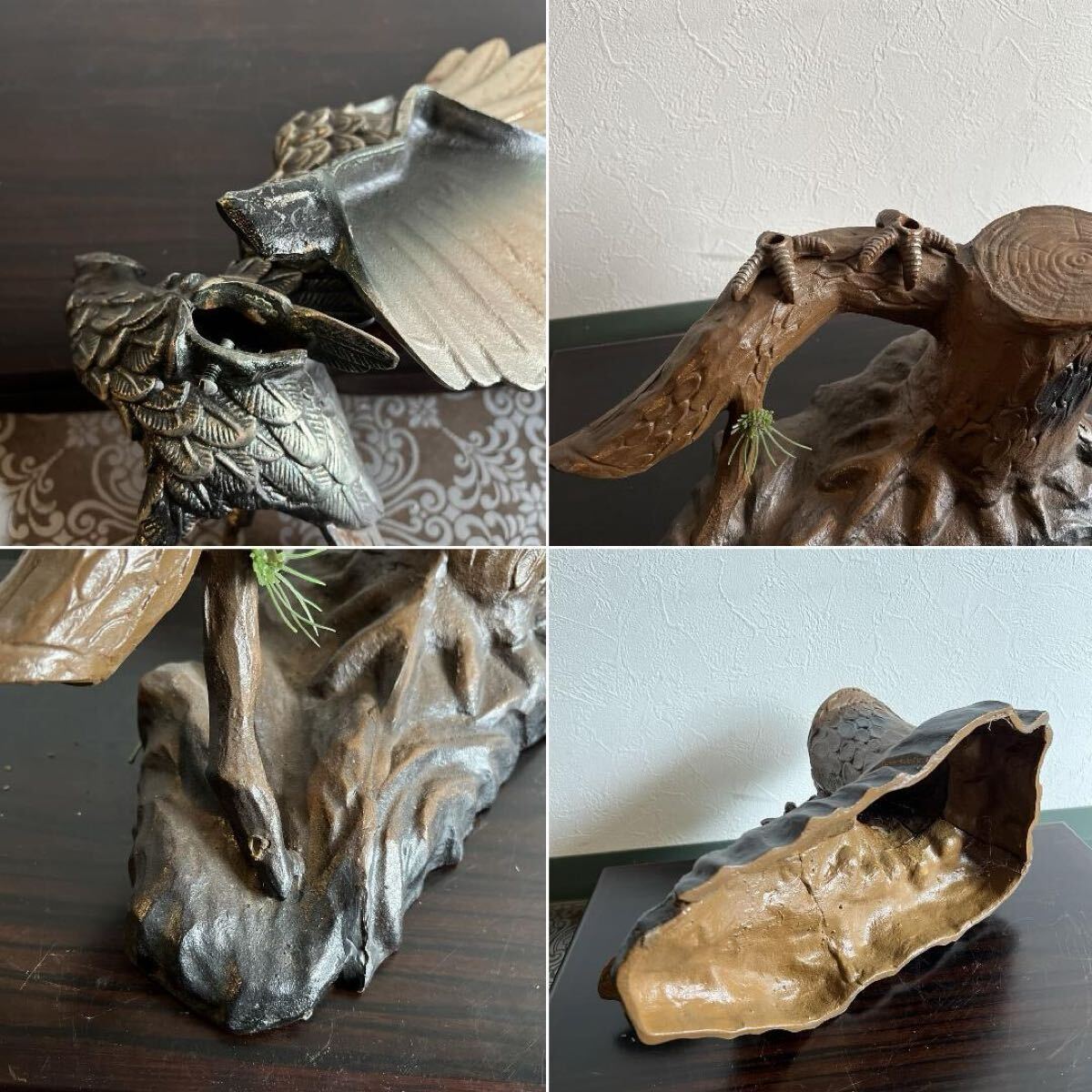 ■サイズ(約) 幅 45.0㎝ 奥行 25.0㎝ 高さ 45.5㎝ ■状 態 経年による若干の小キズや汚れがあります。 ツバサ部分にサビが見られます。(画像参照) 松の根部分の草が欠損しております。 ※ツバサ部分ネジ固定式。 詳細は写真でご確認ください。 ※神経質な方・完璧をお求めの方はご購入をお控えください。 詳細は写真を参考の上、ご入札をお願い致します。 商品写真に関しまして、PC環境や撮影状況等により 色合いが実物と若干異なる場合がございます。 また、サイズに関しましても若干の誤差が生じる場合がございます。 ご理解、ご了承の上、ご入札をお願い致します。 下記の注意事項をよくご確認の上、ご入札をお願い致します。 金額の入力ミスによる入札金額の変更や入札取消はできませんのでご了承下さいませ。 |