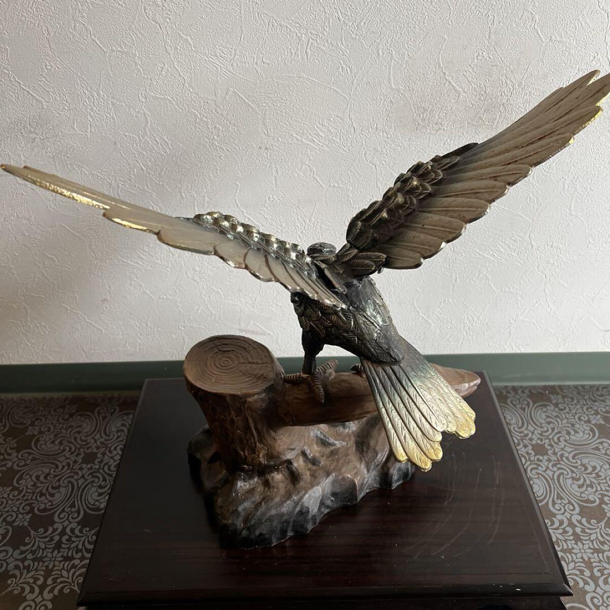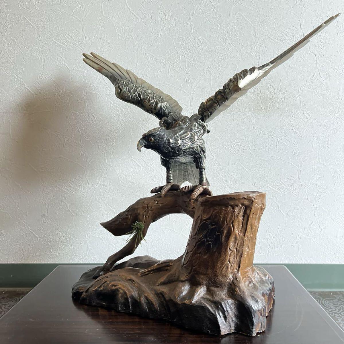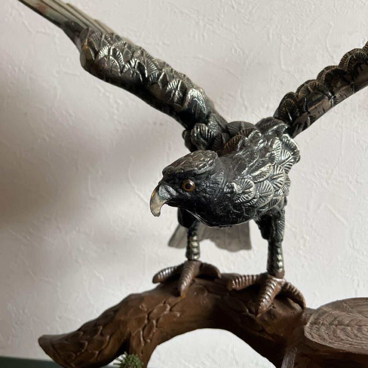 ■サイズ(約) 幅 45.0㎝ 奥行 25.0㎝ 高さ 45.5㎝ ■状 態 経年による若干の小キズや汚れがあります。 ツバサ部分にサビが見られます。(画像参照) 松の根部分の草が欠損しております。 ※ツバサ部分ネジ固定式。 詳細は写真でご確認ください。 ※神経質な方・完璧をお求めの方はご購入をお控えください。 詳細は写真を参考の上、ご入札をお願い致します。 商品写真に関しまして、PC環境や撮影状況等により 色合いが実物と若干異なる場合がございます。 また、サイズに関しましても若干の誤差が生じる場合がございます。 ご理解、ご了承の上、ご入札をお願い致します。 下記の注意事項をよくご確認の上、ご入札をお願い致します。 金額の入力ミスによる入札金額の変更や入札取消はできませんのでご了承下さいませ。 |