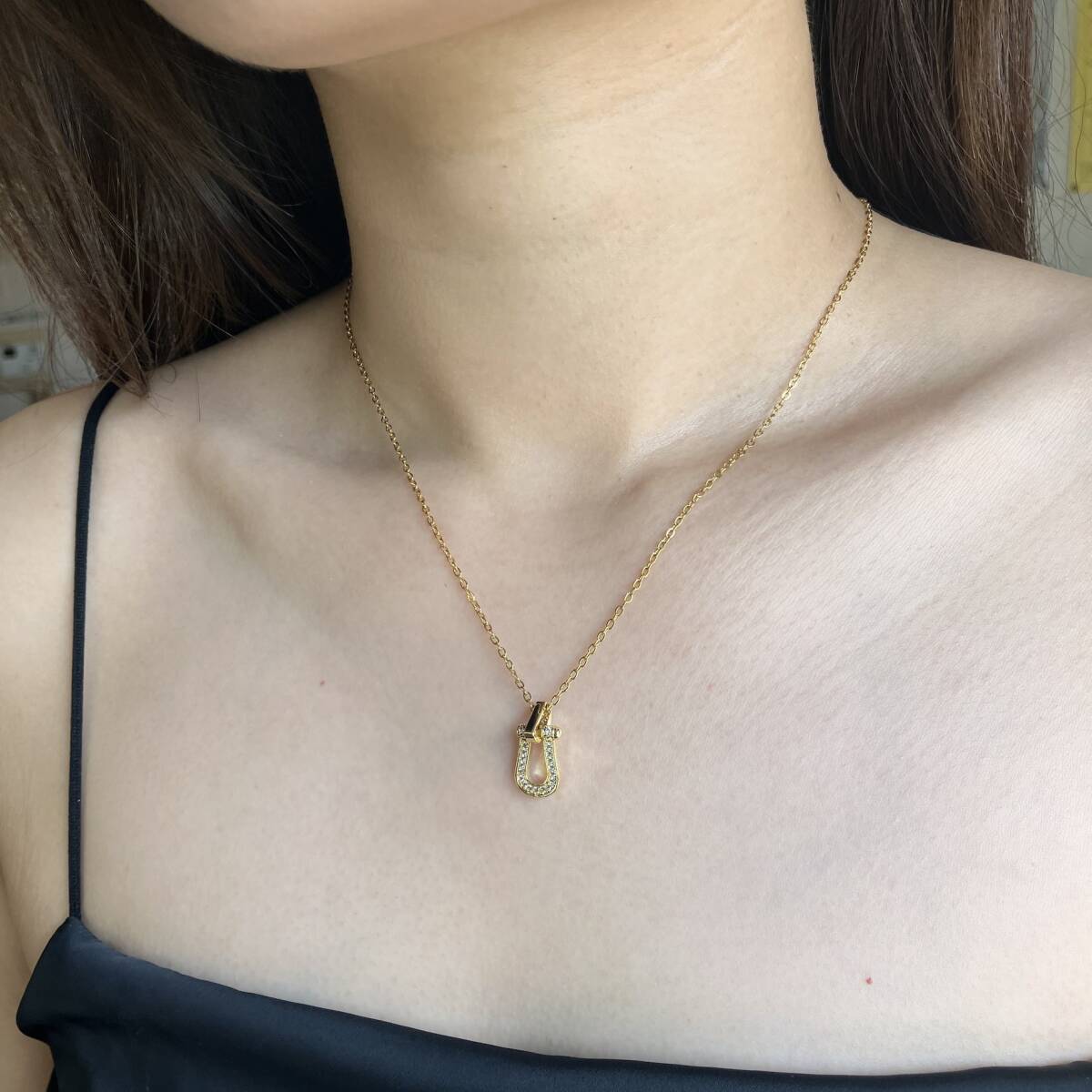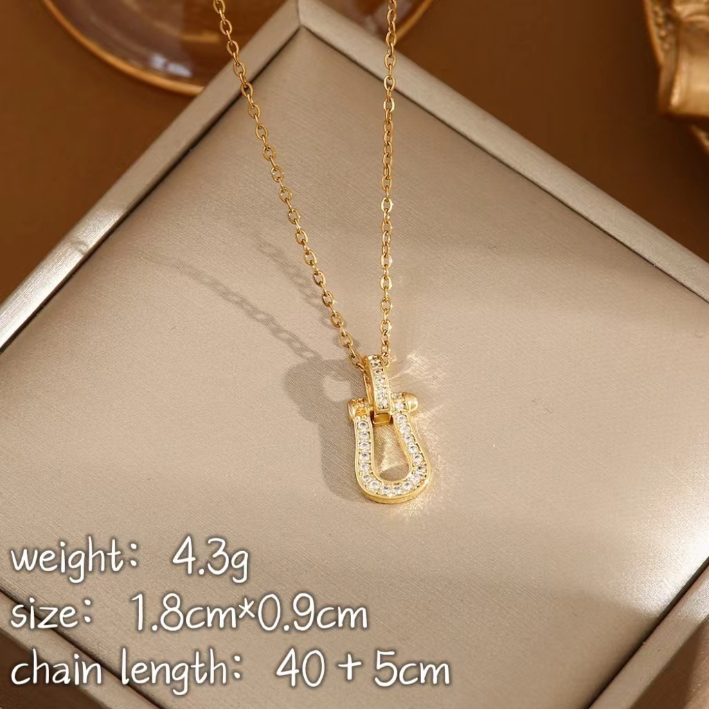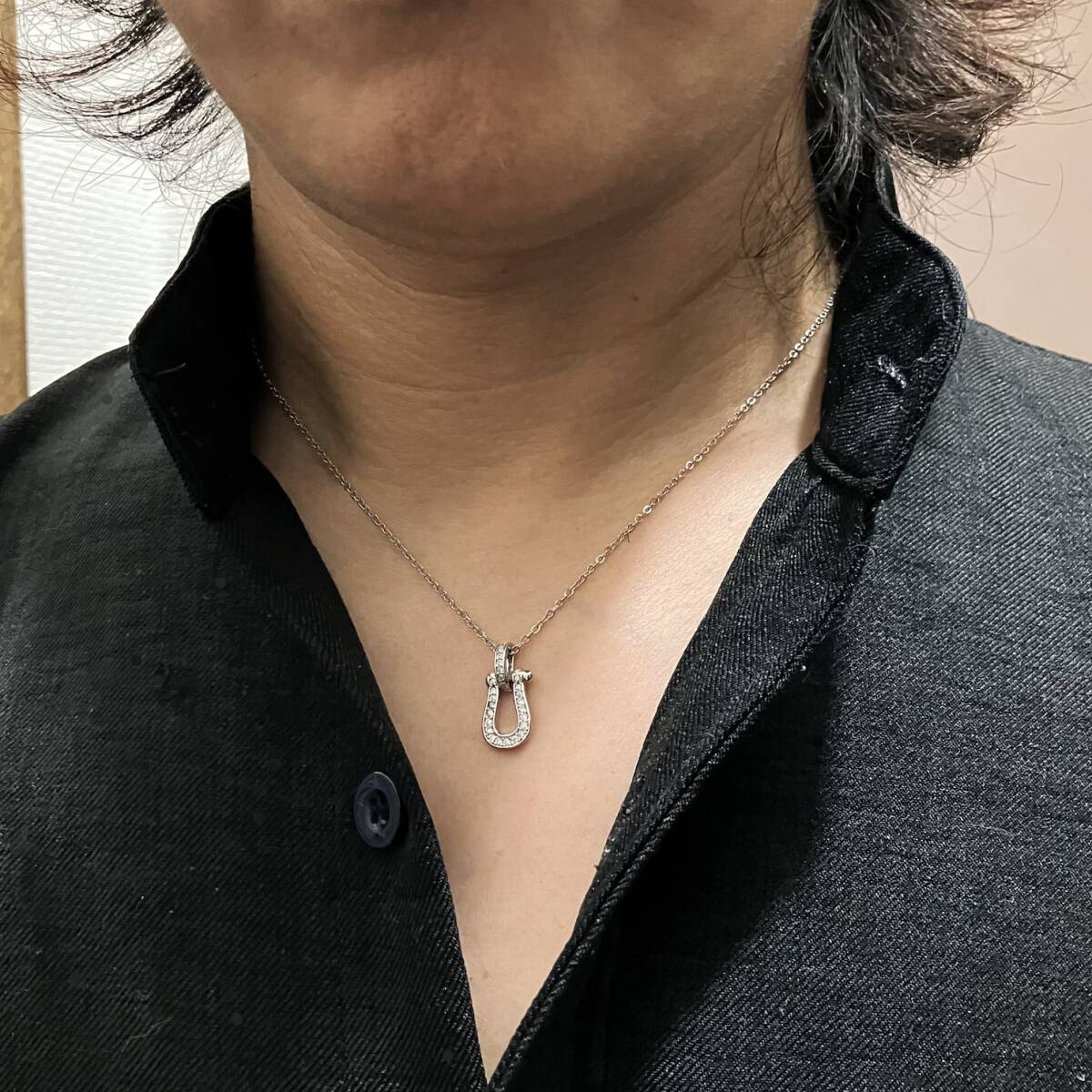 幸運を呼び込むとされる「ホースシュー(馬蹄)」を、洗練されたデザインで表現したネックレス。