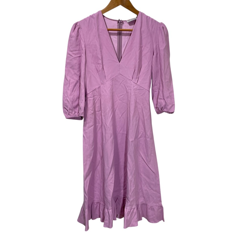 商品名:RED VALENTINO レッドヴァレンティノ 長袖 Vネック ミモレ丈 フレアワンピース 40 ピンク