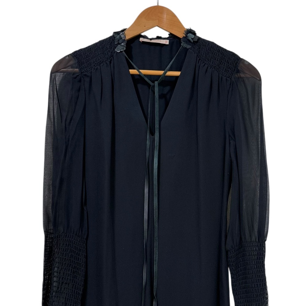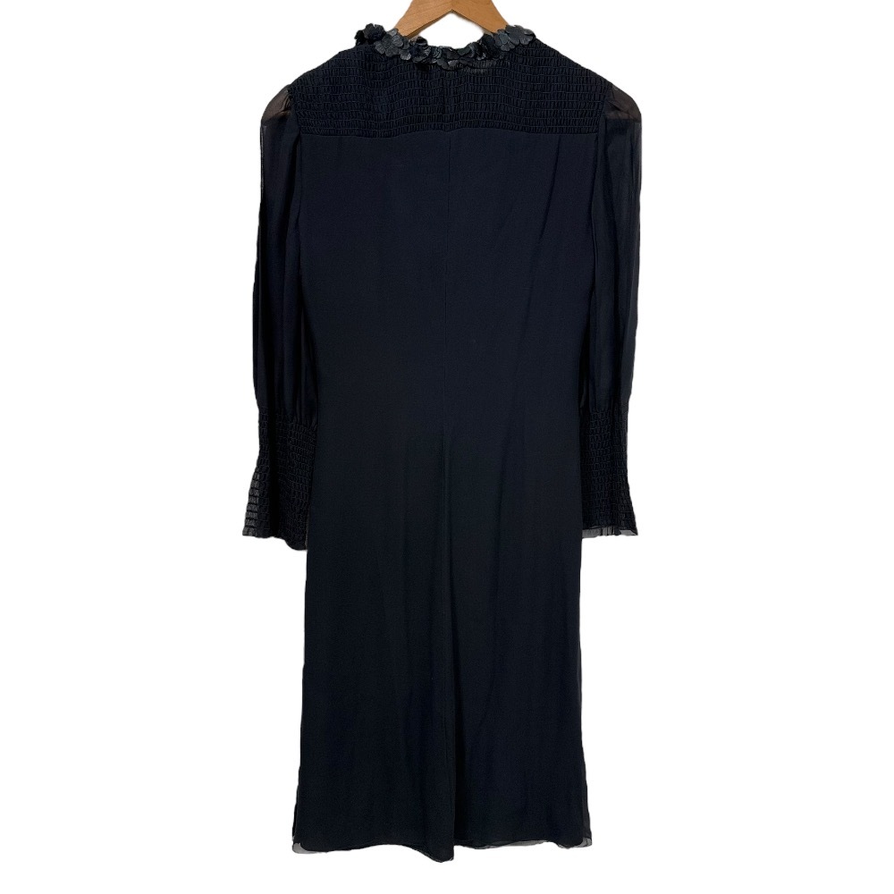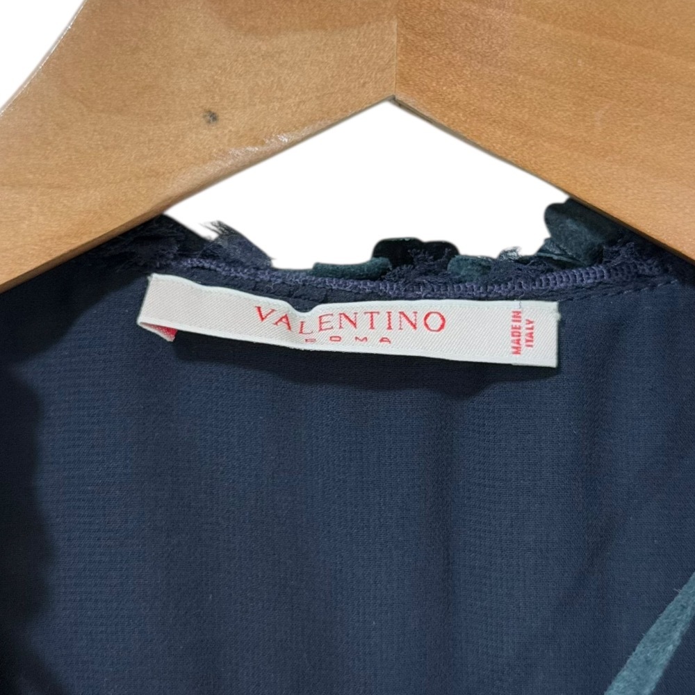 美品 VALENTINO ヴァレンティノ ヴィンテージ シルク100% 長袖 ひざ丈 シアー ワンピース ドレス ダークネイビー