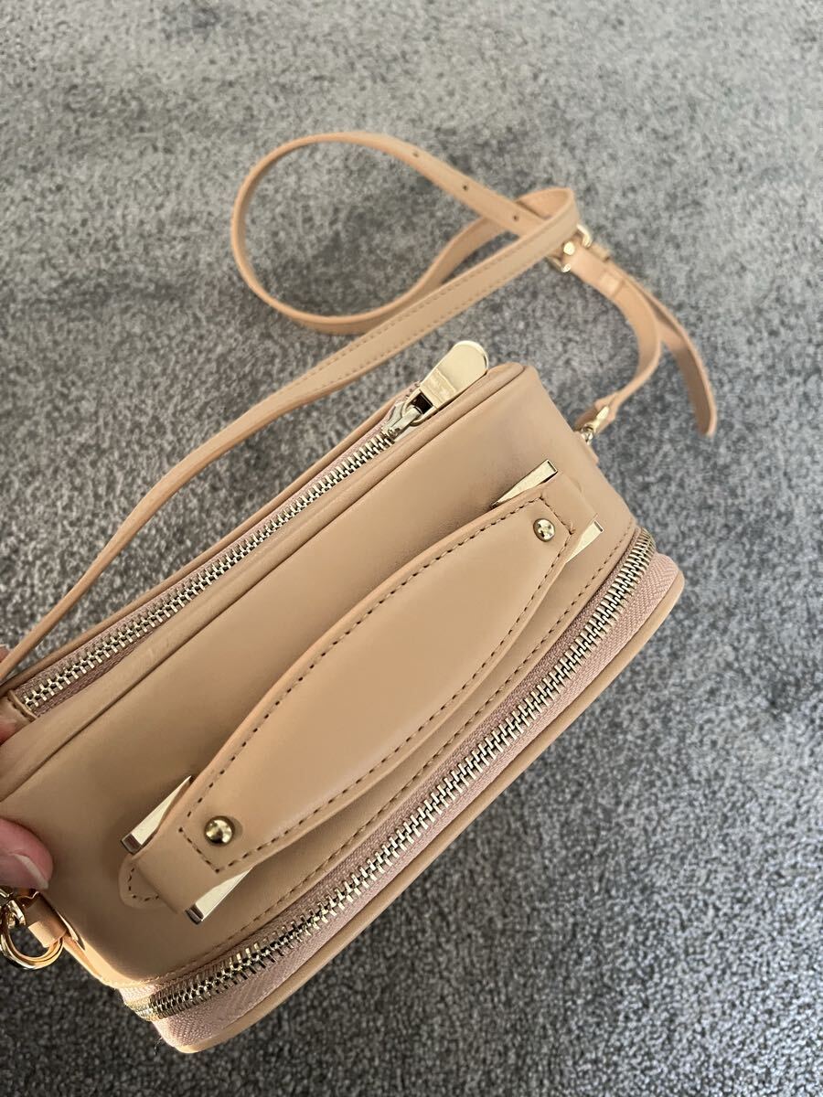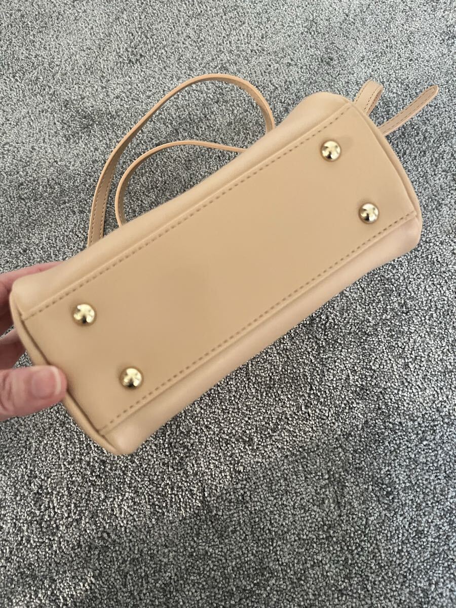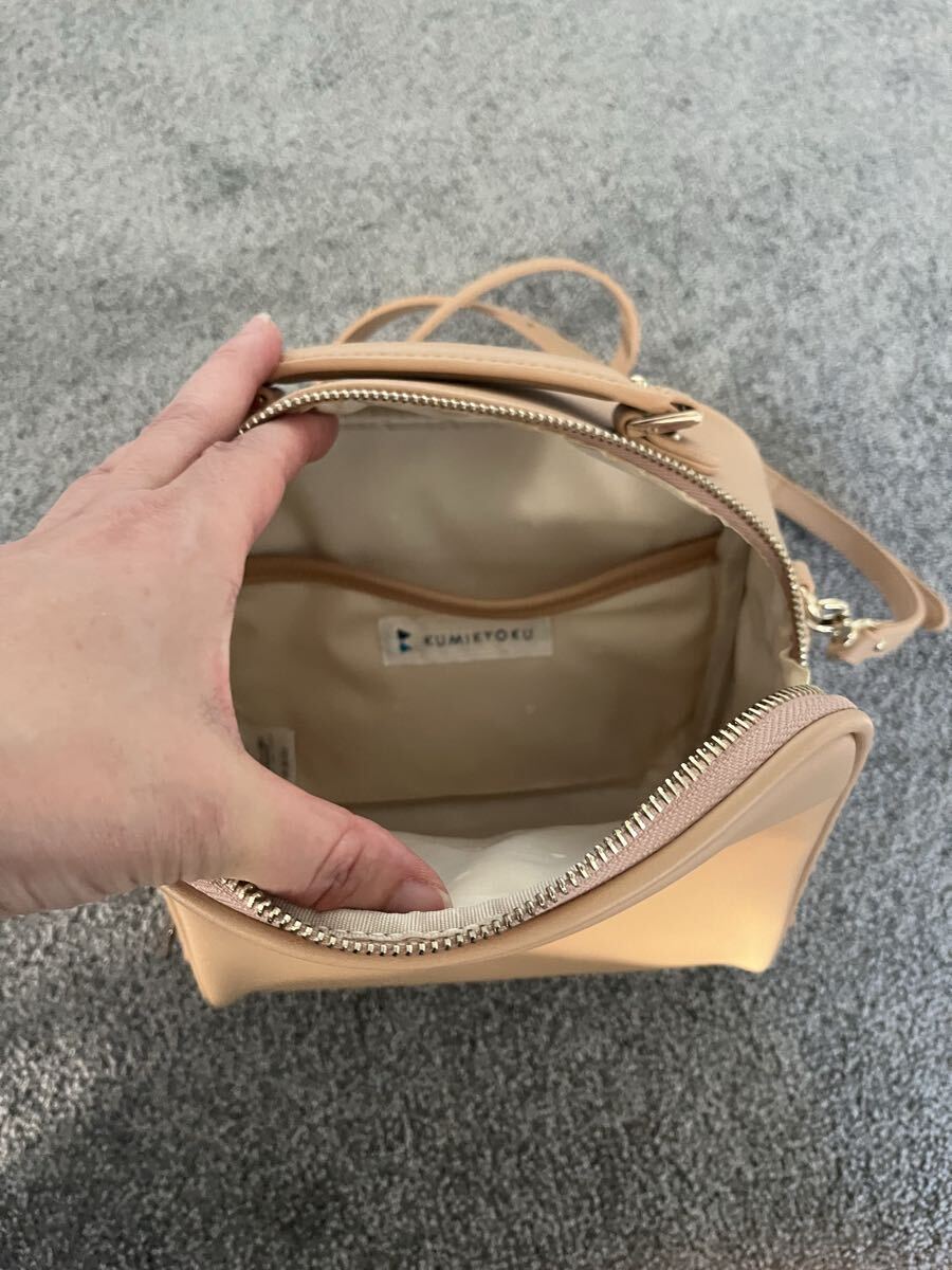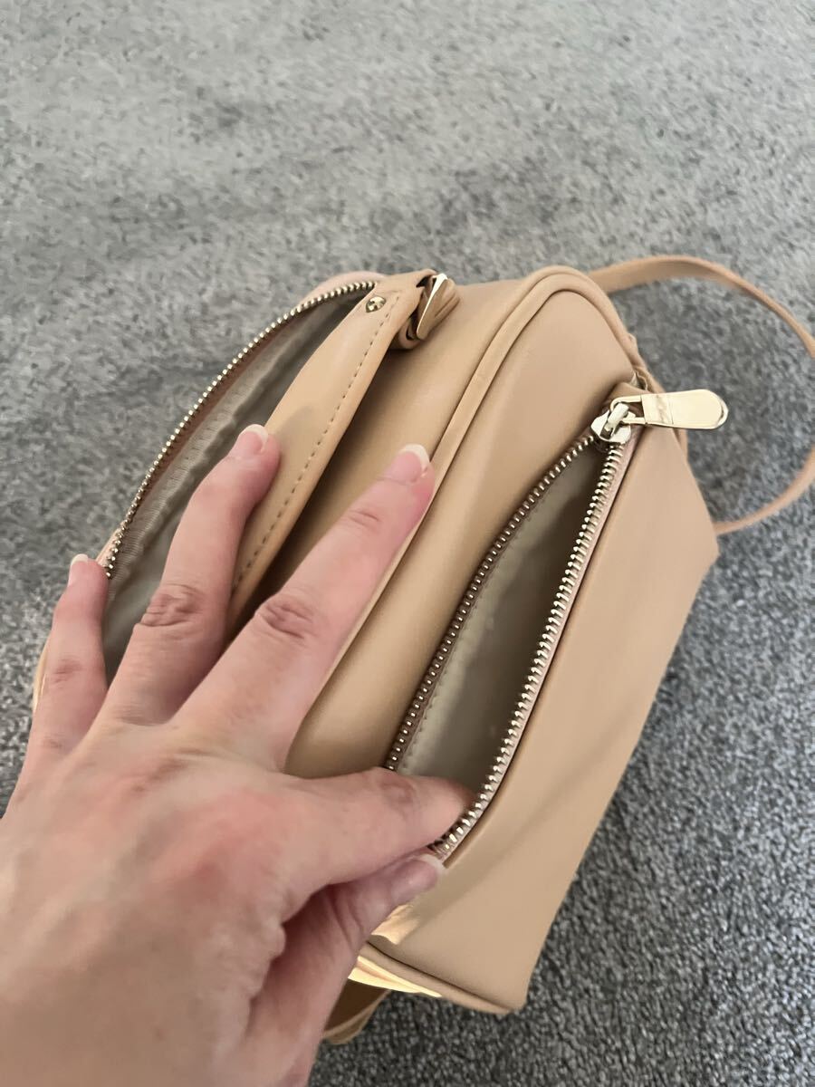 シンプルでスタイリッシュなベージュのショルダーバッグ。