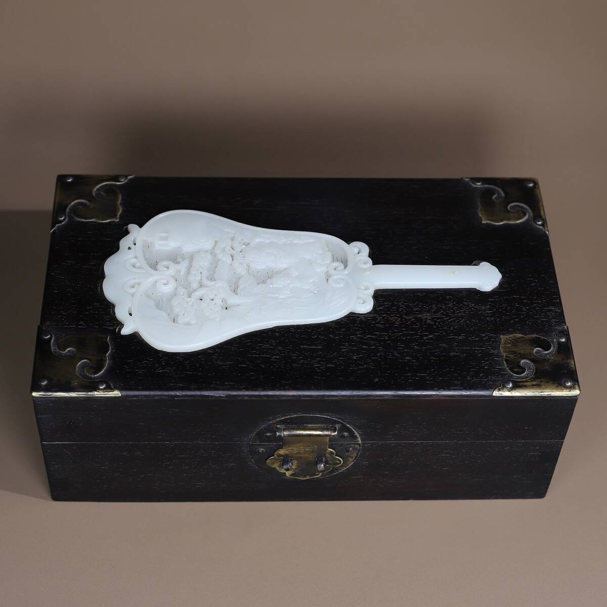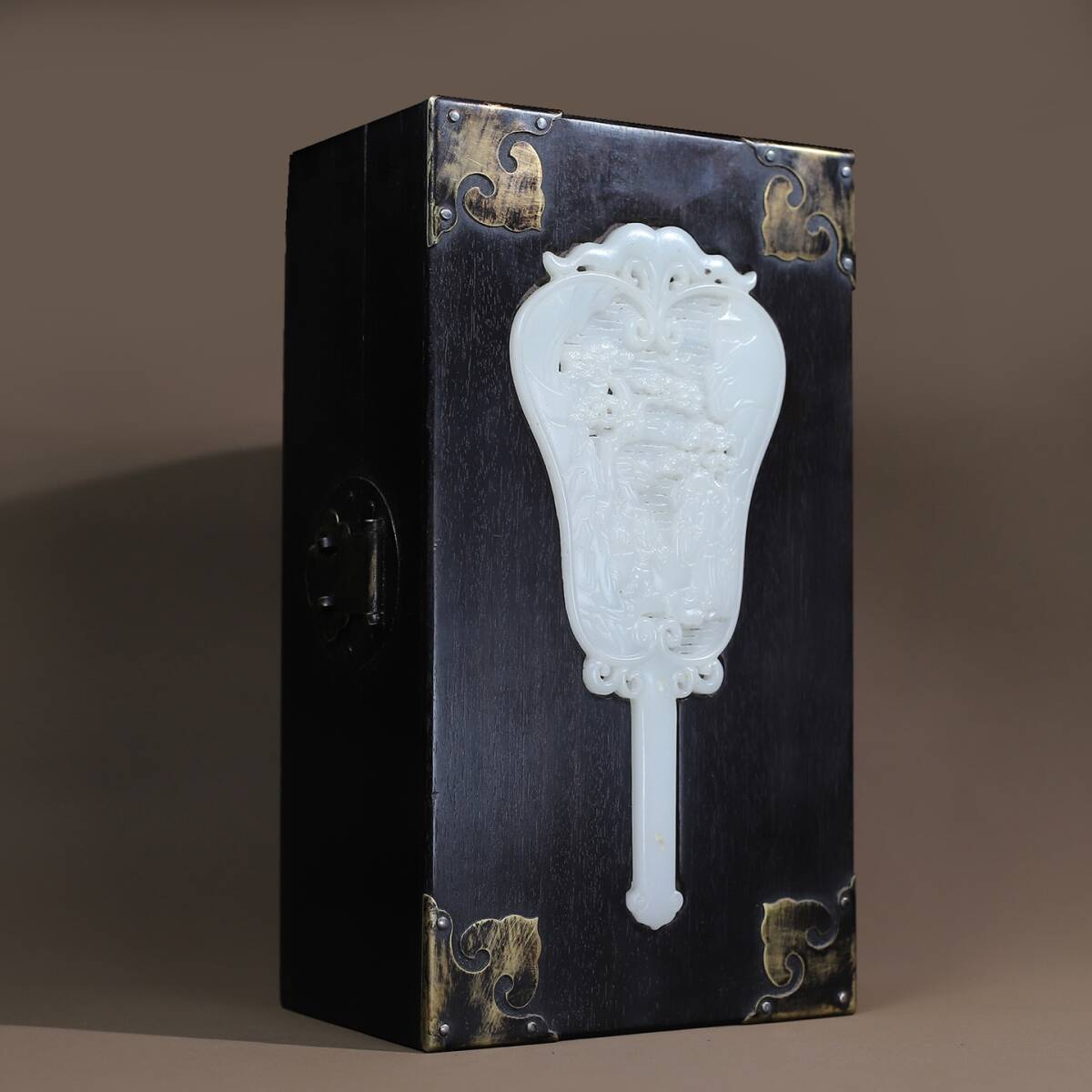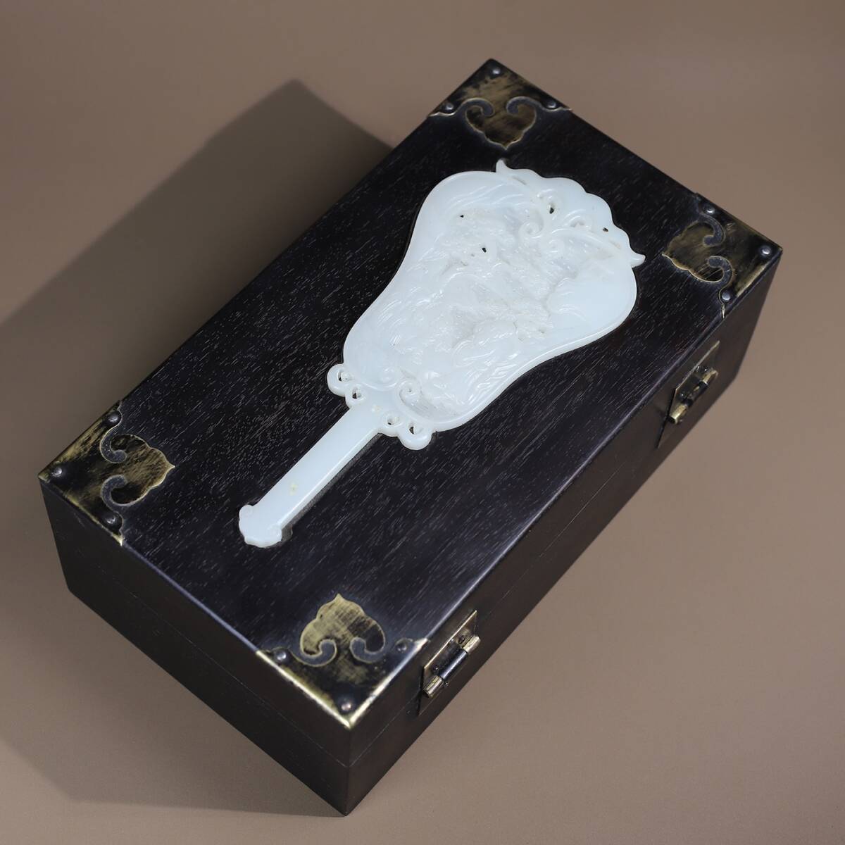 *珍品旧蔵* 清 黑檀木 はめ込む玉 多寶盒 收納盒 極細工 中国古玩 骨董品 古美味 H48