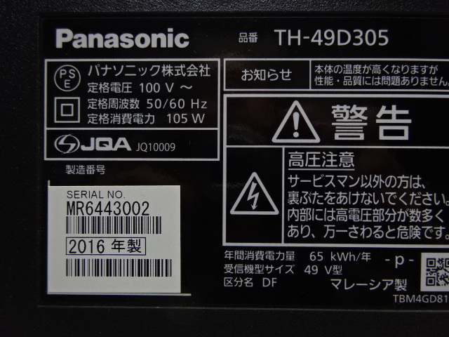 | No215★panasonic★49型 LED/USB/外付けHDD/テレビ/2016年製★TH-49D305 | |