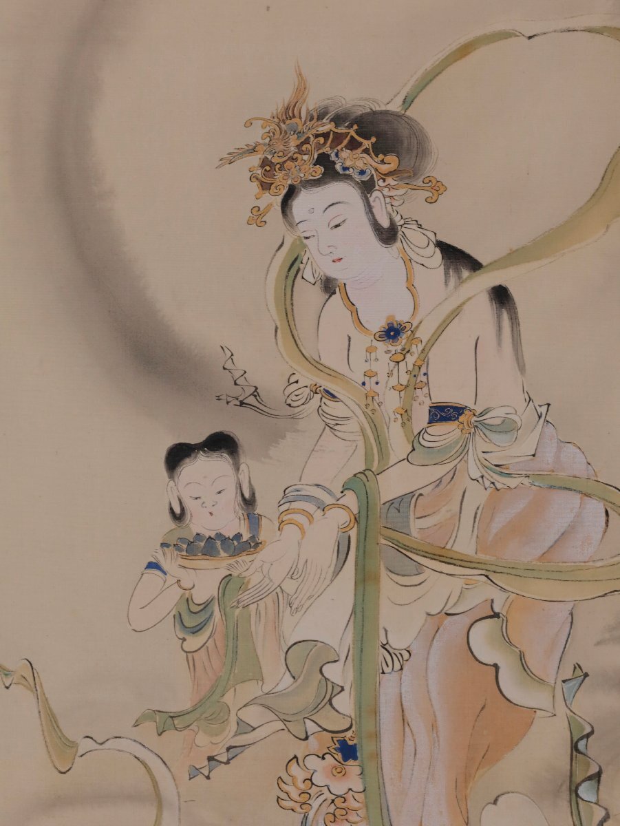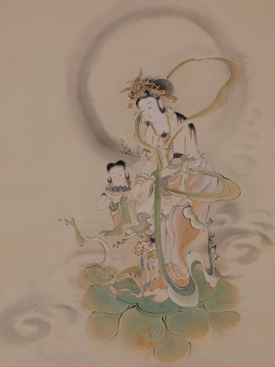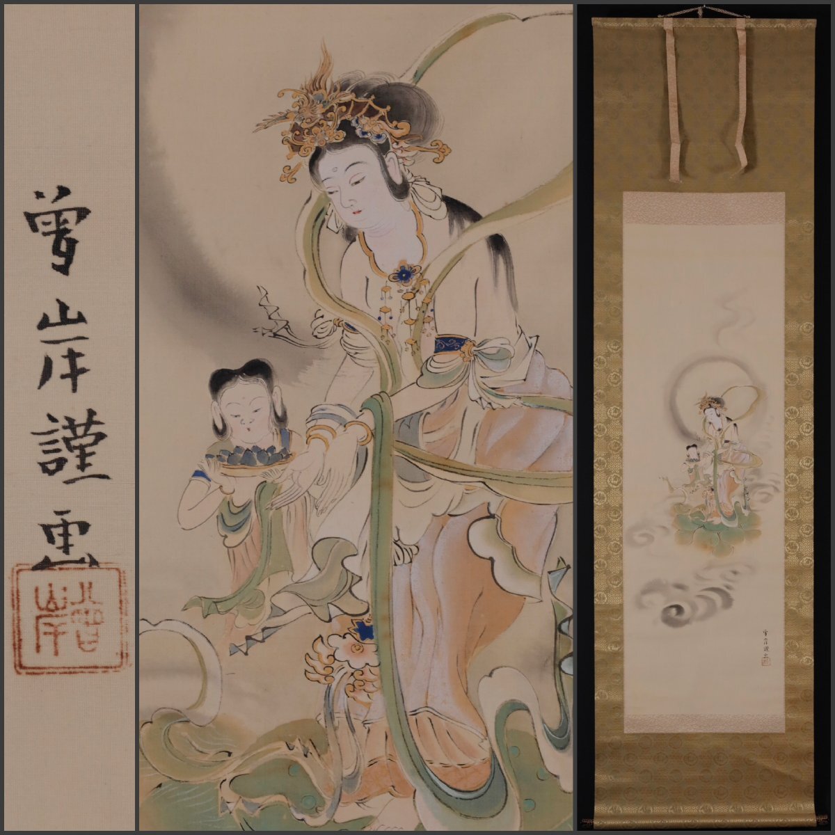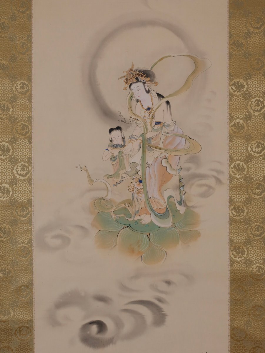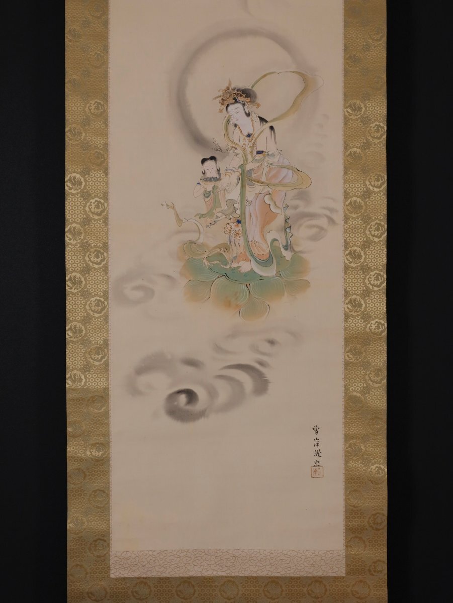 【模写】吉】12792 大橋曽岸 観音像 仏画 仏教 中国画 掛軸 掛け軸 骨董品